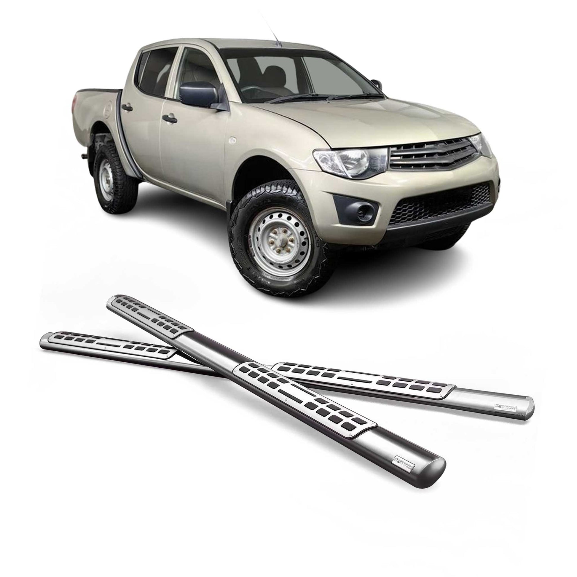 Stahl Schwellerrohre Trittbretter für Mitsubishi L200 Double Cab 2006-2009 Grau