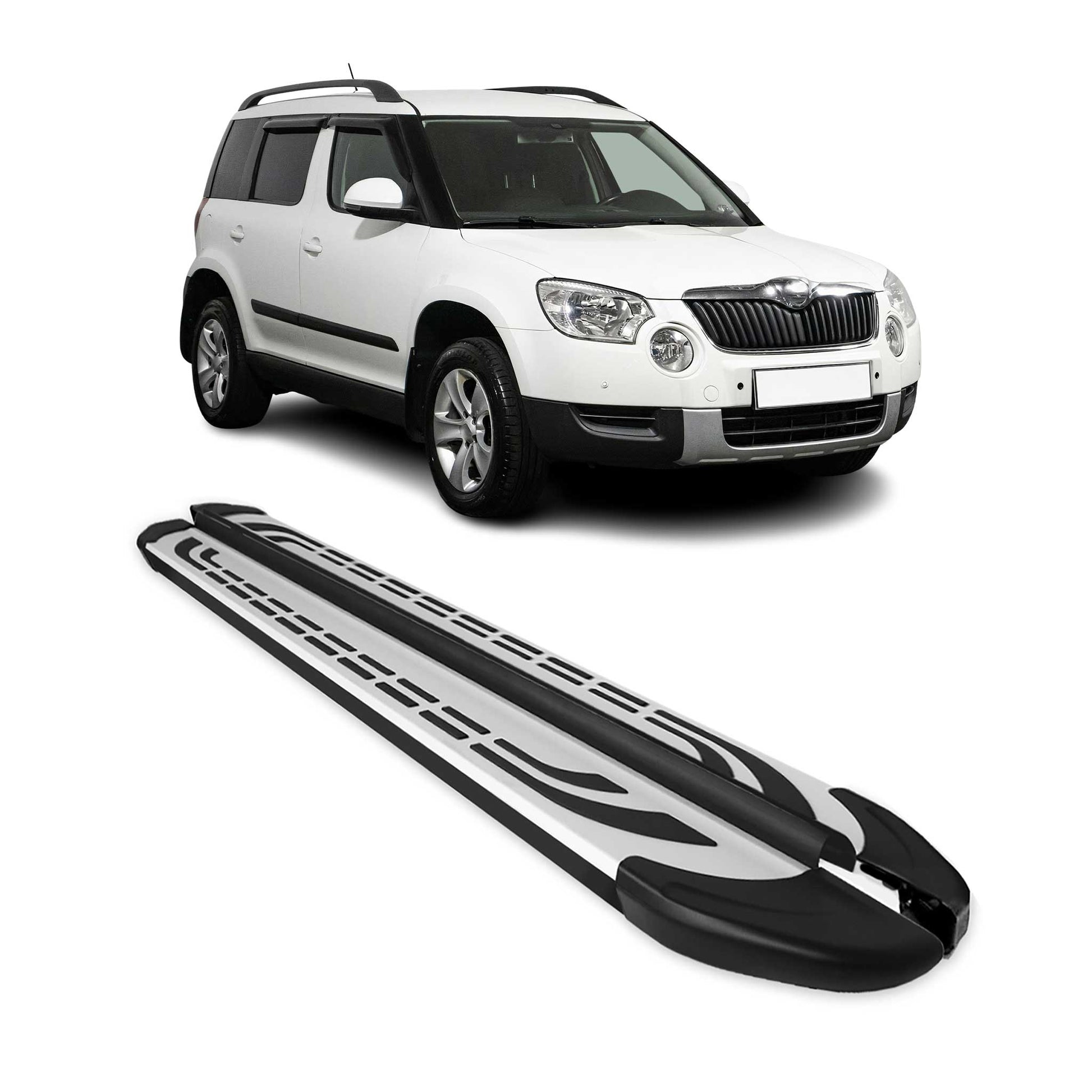 Trittbretter Seitenschweller Seitenbretter für Skoda Yeti 2010-2017 Schwarz Alu