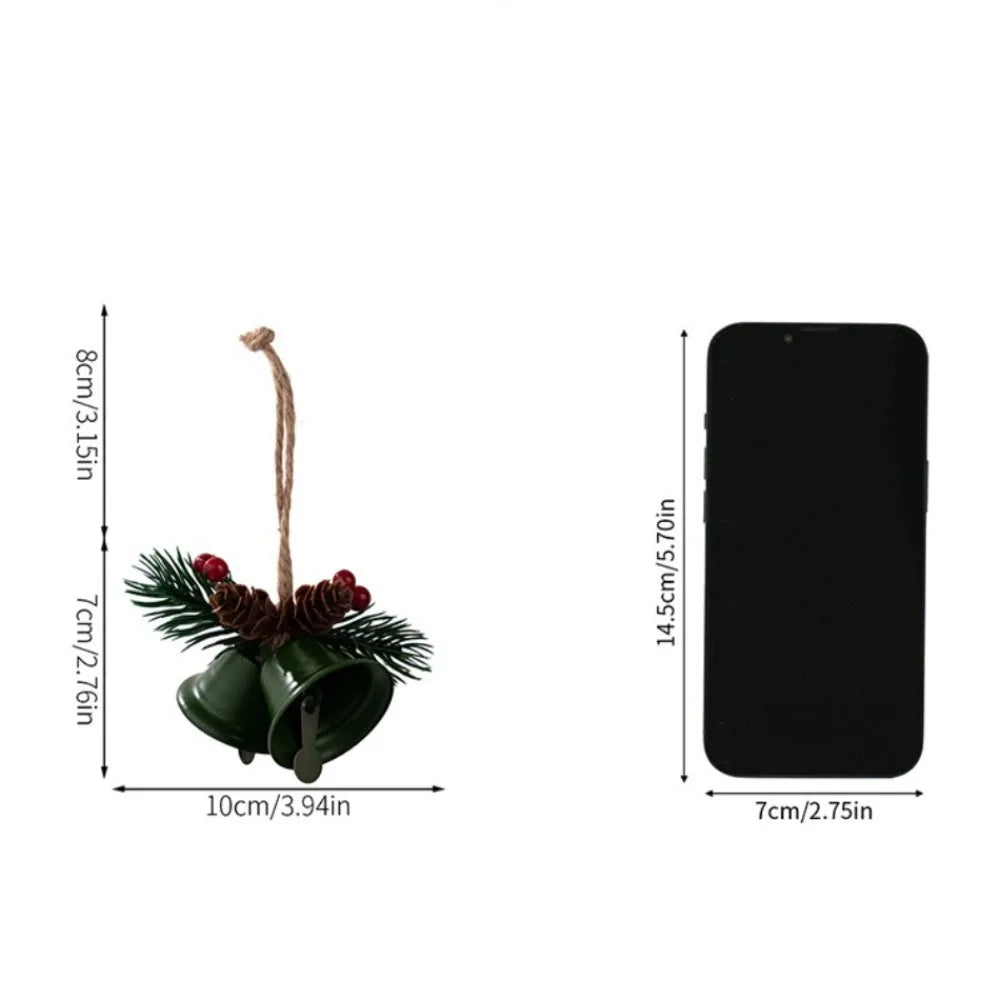 Weihnachts-Jingle-Glocken-Anhänger, doppelte Glocke mit Kiefernbaum-Ornamenten zum Aufhängen an der Tür, Weihnachtsbaum, Weihnachtsfeier-Geschenkdekorationen