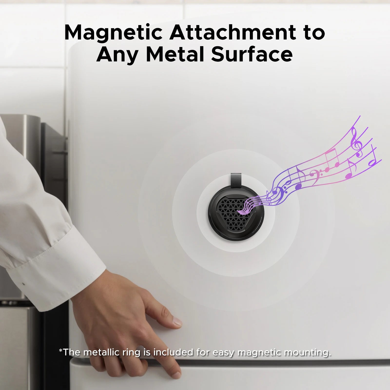 - Problem: Musik nur drinnen in Ruhe hörbar. Lösung: magnetische Halterung und robustes Gehäuse für unbeschwerten Einsatz im Freien und auf Reisen.