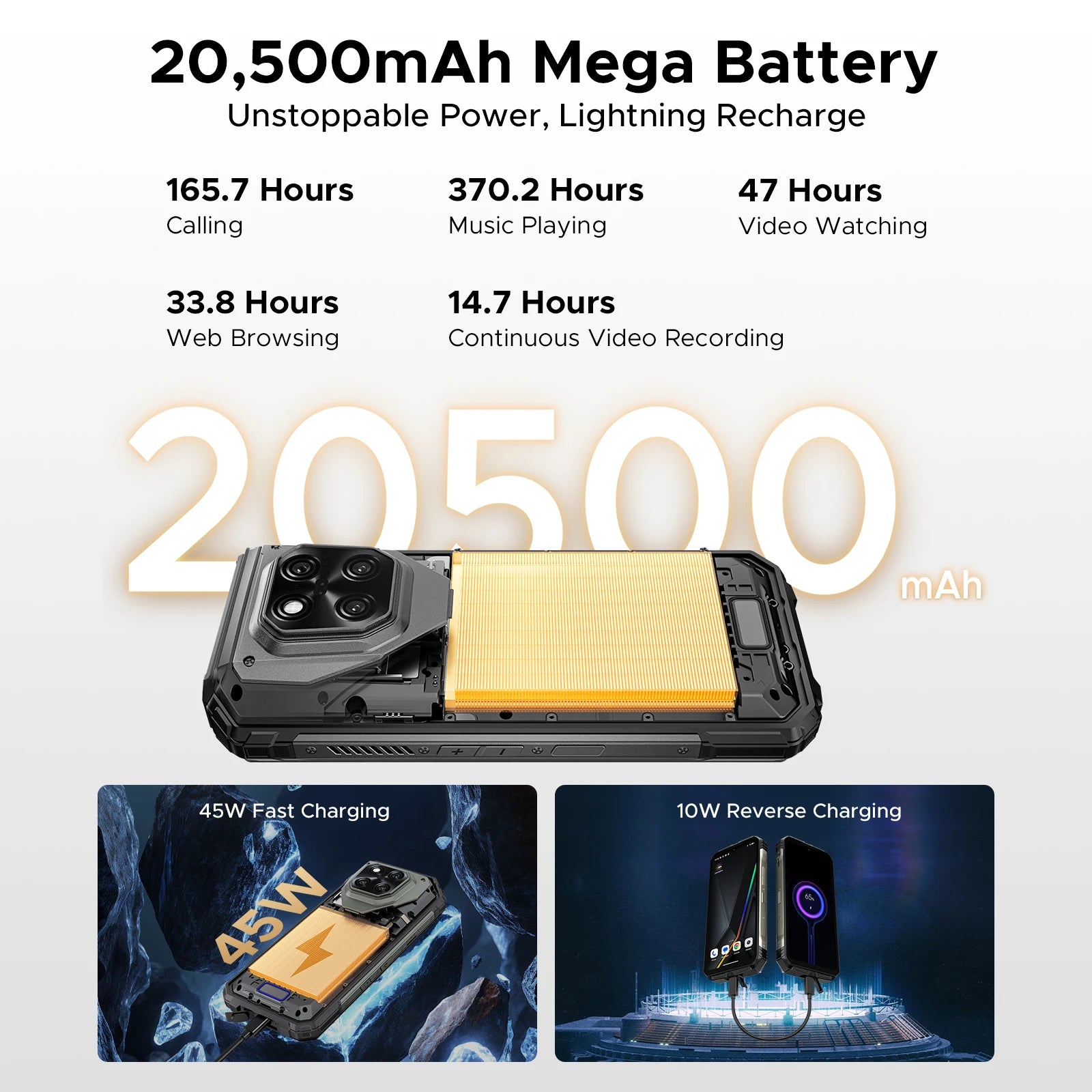 - Gigantischer 20500 mAh Akku für lange Unabhängigkeit – Tage zwischen den Ladezyklen sind realistisch