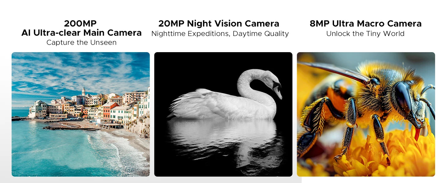 - Rückseite mit 200 MP Hauptkamera plus 8 MP Ultraweitwinkel- und 20 MP Zusatzsensoren – detailreiche, vielseitige Aufnahmen