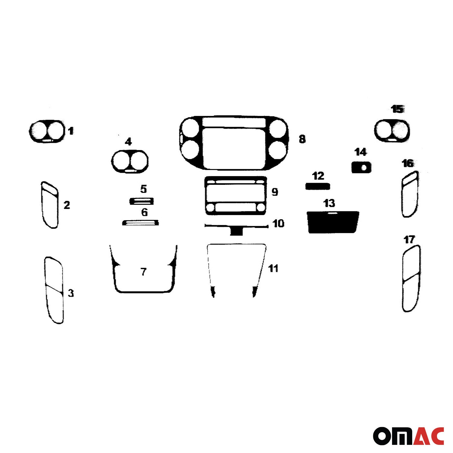 Innenraum Dekor Cockpit für VW Tiguan 2011-2016 FL Aluminium Optik 17tlg