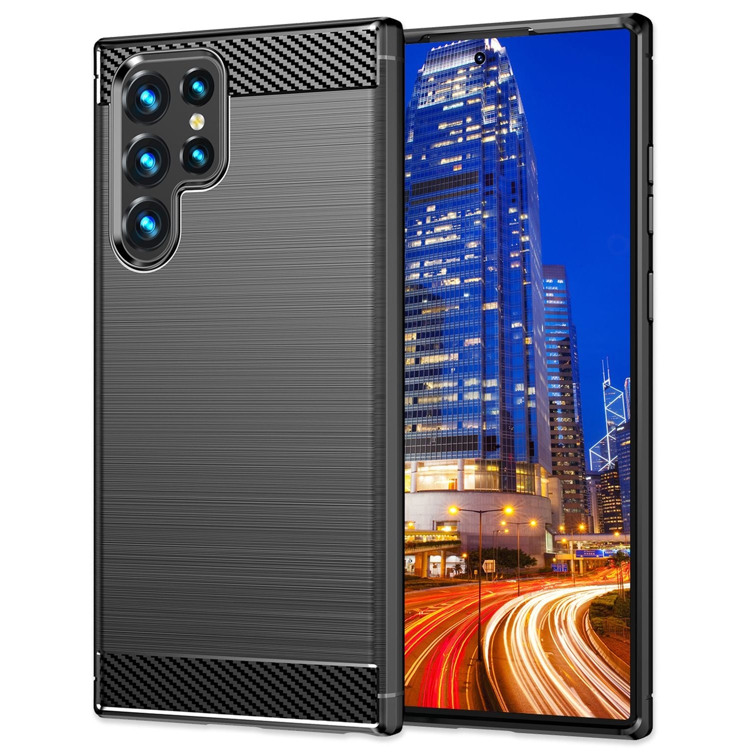 NALIA Carbon-Style Silikonhülle für Samsung Galaxy S24 Ultra Hülle, Matt-Schwarze Schutzhülle mit Kohlefaser-Struktur