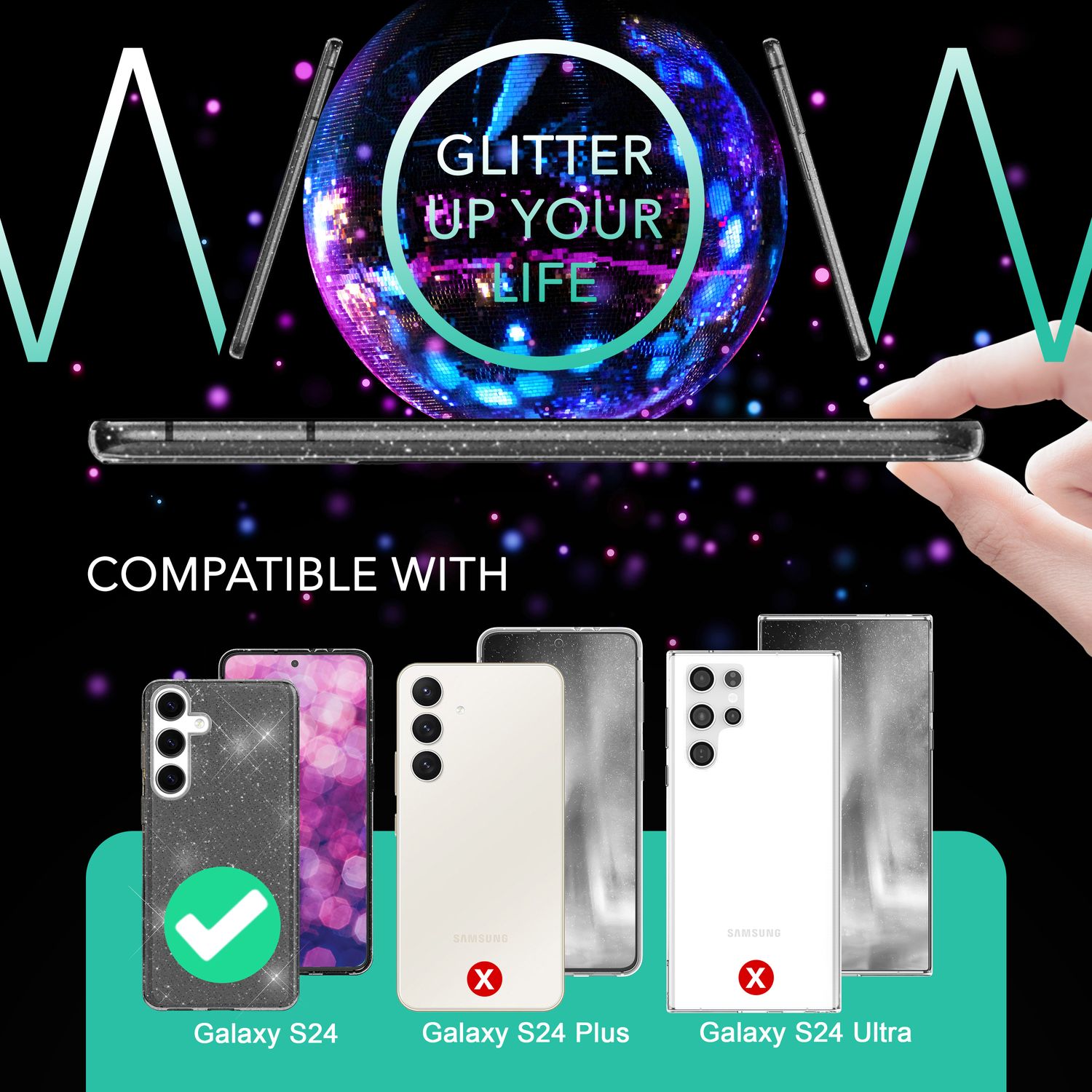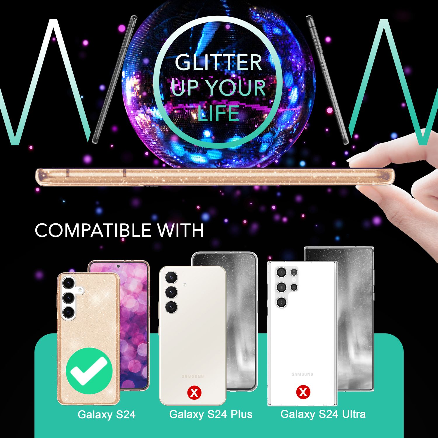 NALIA Glitzernde Schutzhülle für Samsung Galaxy S24 Hülle, Durchsichtige Silikon Handyhülle, Glitzerhülle