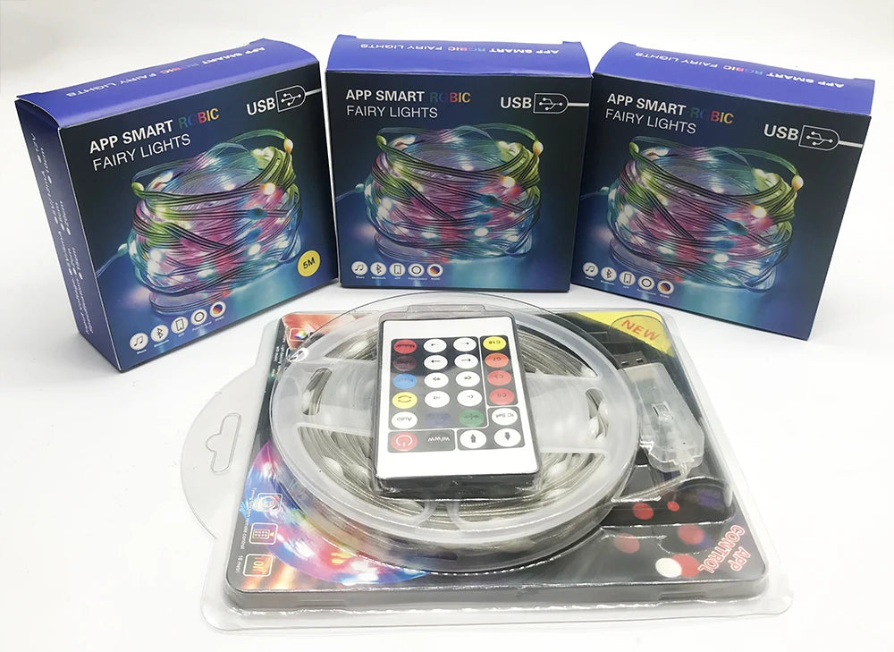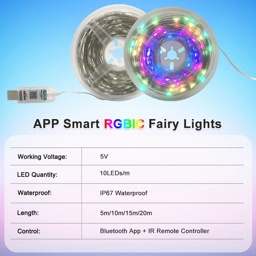 - RGBIC-LED-Streifen (5 m / 10 m / 15 m / 20 m) mit USB-Spannung – wählbare Länge gemäß Produktoption.