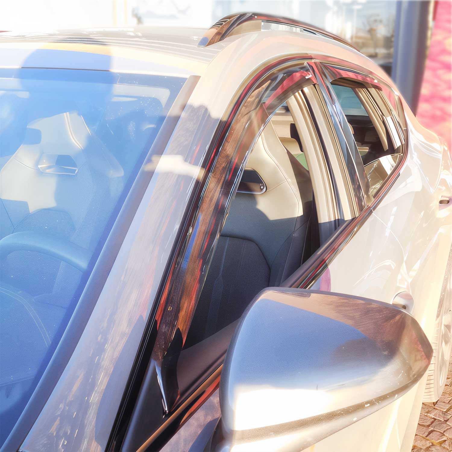 Verbessern Sie Ihr Fahrzeug mit unseren eleganten Windabweisern. Einfache Installation, sportlicher Look und individuelle Passform für nahtlose Integration. Witterungsbeständig, waschmaschinenfest und aerodynamisches Design. Verbessern Sie Ihren Stil, reduzieren Sie Windgeräusche und verbessern Sie den Luftstrom für ein besseres Fahrerlebnis.
