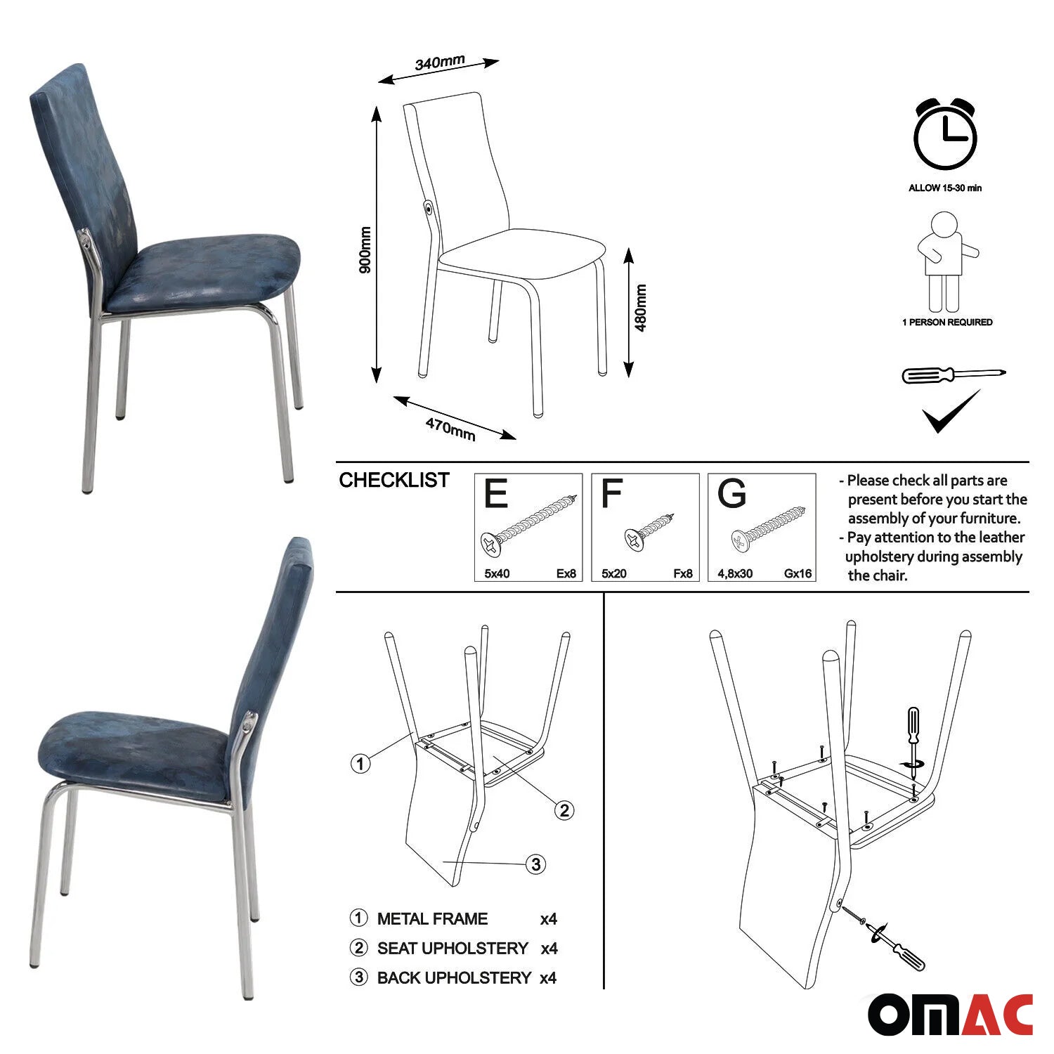 Esszimmerstühle Küchenstuhl Navy Blau 4x Stühl Kunstleder