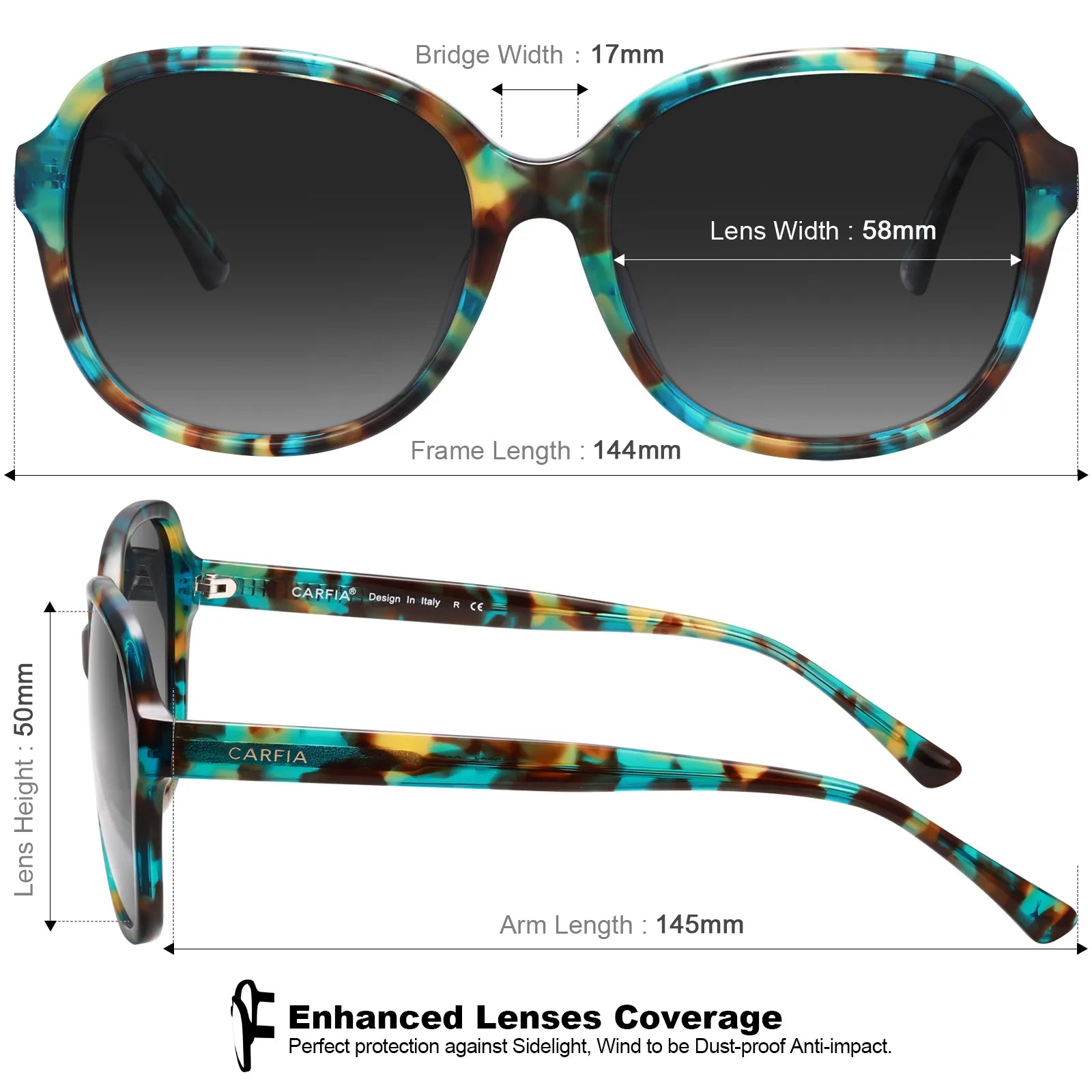 Ergonomic Construction Sun Glasses for Women - These polarized women's sunglasses offer enhanced lens coverage (with a lens width of 57mm) and a specialized lens curvature that provides perfect protection against sidelight. They are ideal for activities like golf, driving, and handling anything else that the sun presents!