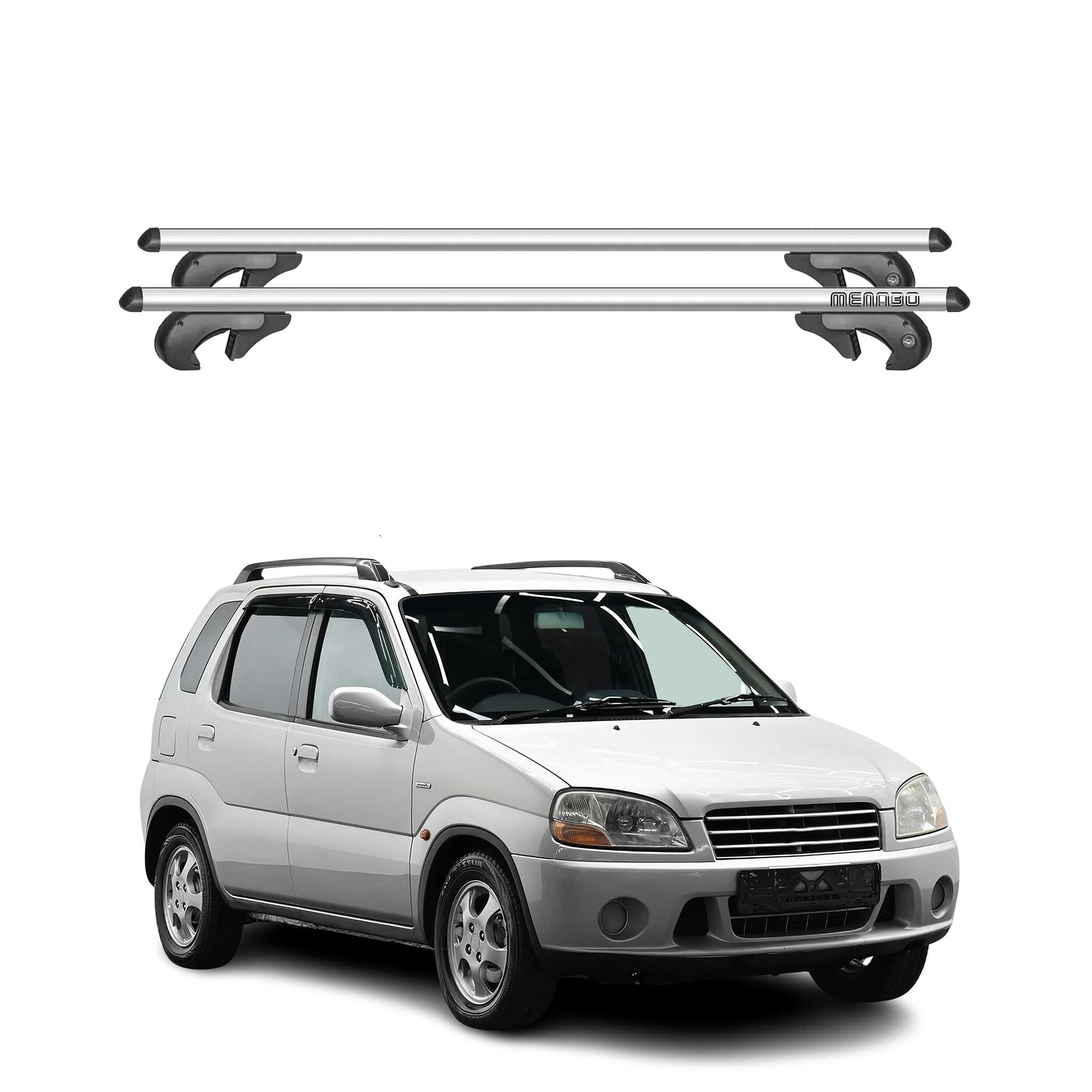 Menabo Dachträger Grundtäger für Suzuki Ignis mk1 2003-2008 FL 90kg Alu Grau 2x