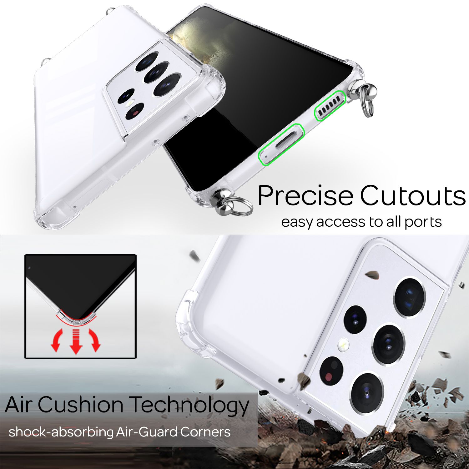 Für maximalen Schutz sorgt die fortschrittliche Air-Cushion-Technologie, die Stöße effektiv absorbiert. Die verstärkten Ecken bieten zusätzlichen Schutz bei Stürzen, während die robuste Rückseite aus hochwertigem Polycarbonat Stabilität verleiht. Trotz der hohen Schutzleistung bleibt die Hülle schlank und unauffällig.