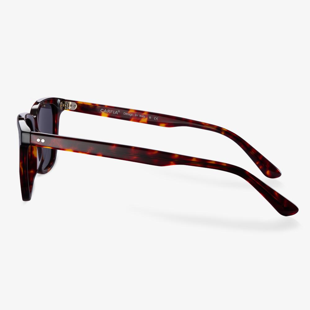 These black square sunglasses will make you shine. The Abelian sunglasses feature a striking full-rim frame with a black acetate finish. For both modern and retro design elements, double stud rivets complete the look. More importantly, it features larger nose pads to minimize sliding and maximize comfort.