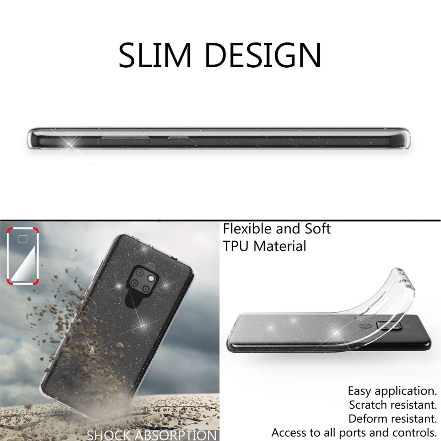 NALIA Glitter Hülle kompatibel mit Huawei Mate20, Glitzer Silikon Case Cover