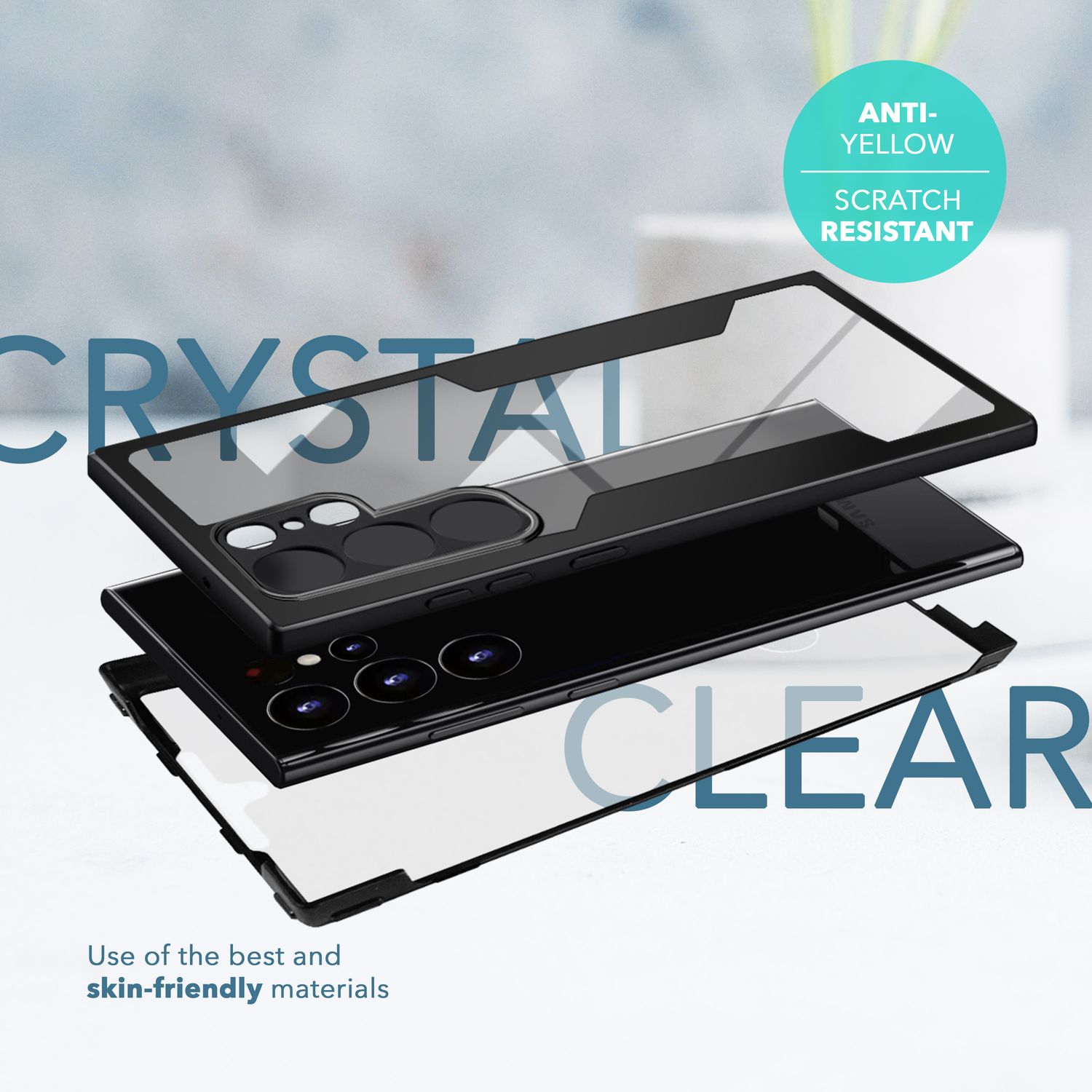 NALIA Klares 360-Grad Hybrid Cover für Samsung Galaxy S24 Ultra Hülle, Kratzfeste Harte Rückseite & Fallschutz-Rahmen