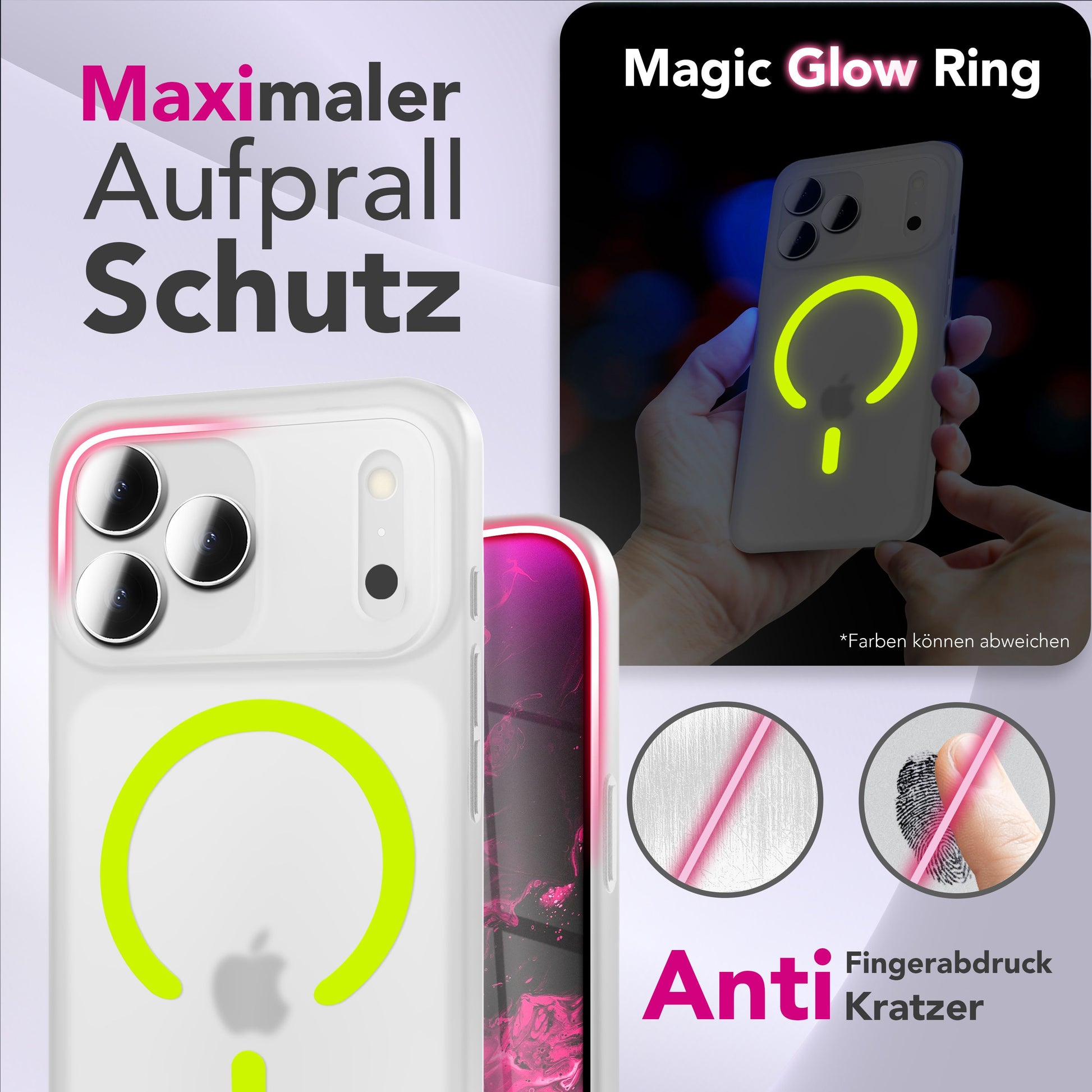 NALIA MagSafe Hülle Thinix Glow für Apple iPhone 17 Pro Max (Extrem Dünn mit Leucht-Ring) - 0,3mm Slim Cover, Leuchtender Magnetring, Mattiert & Frosted