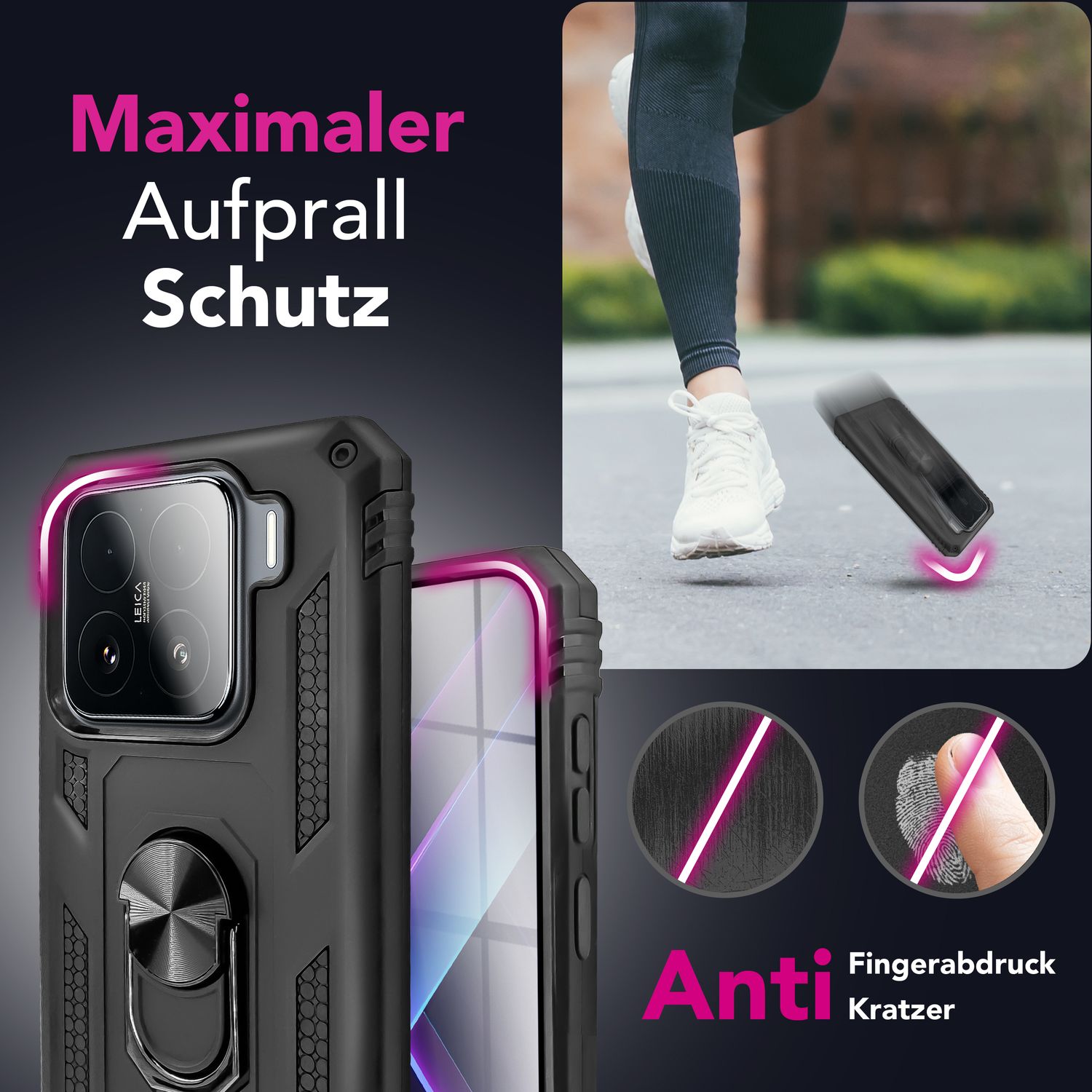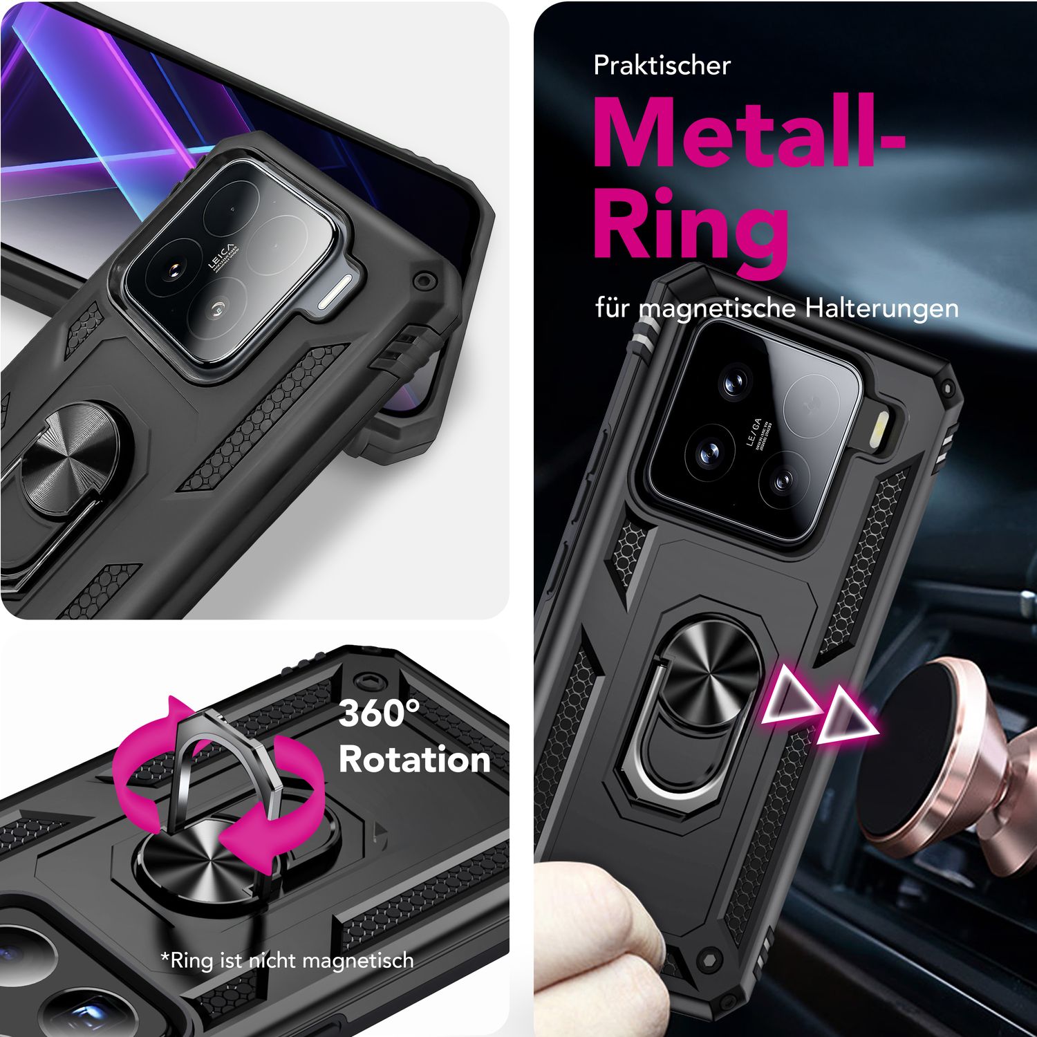 NALIA RingDefend Hülle für Xiaomi 15 – Militärische Panzerhülle mit 360° Metallring & Kickstand, Stoßfestes Dual-Layer Armor Case mit Anti-Rutsch Grip, Outdoor Cover - Schwarz