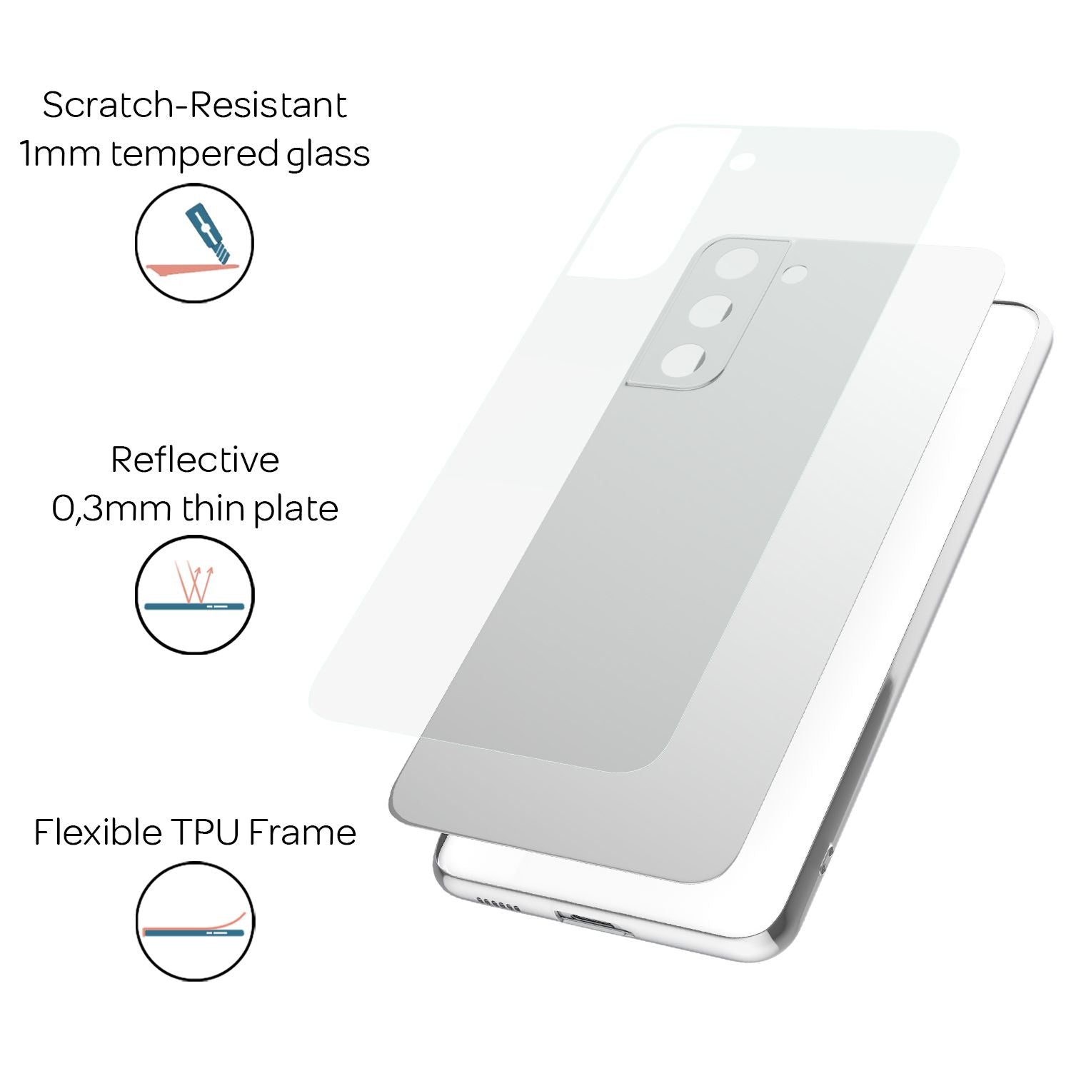 Die Rückseite des Hardcases besteht aus widerstandsfähigem 9H Tempered Glass, das deinem Handy optimalen Schutz vor Kratzern und Stößen bietet. Der klare Spiegeleffekt lässt dein Gerät modern und minimalistisch wirken, während du jederzeit einen praktischen Spiegel griffbereit hast.