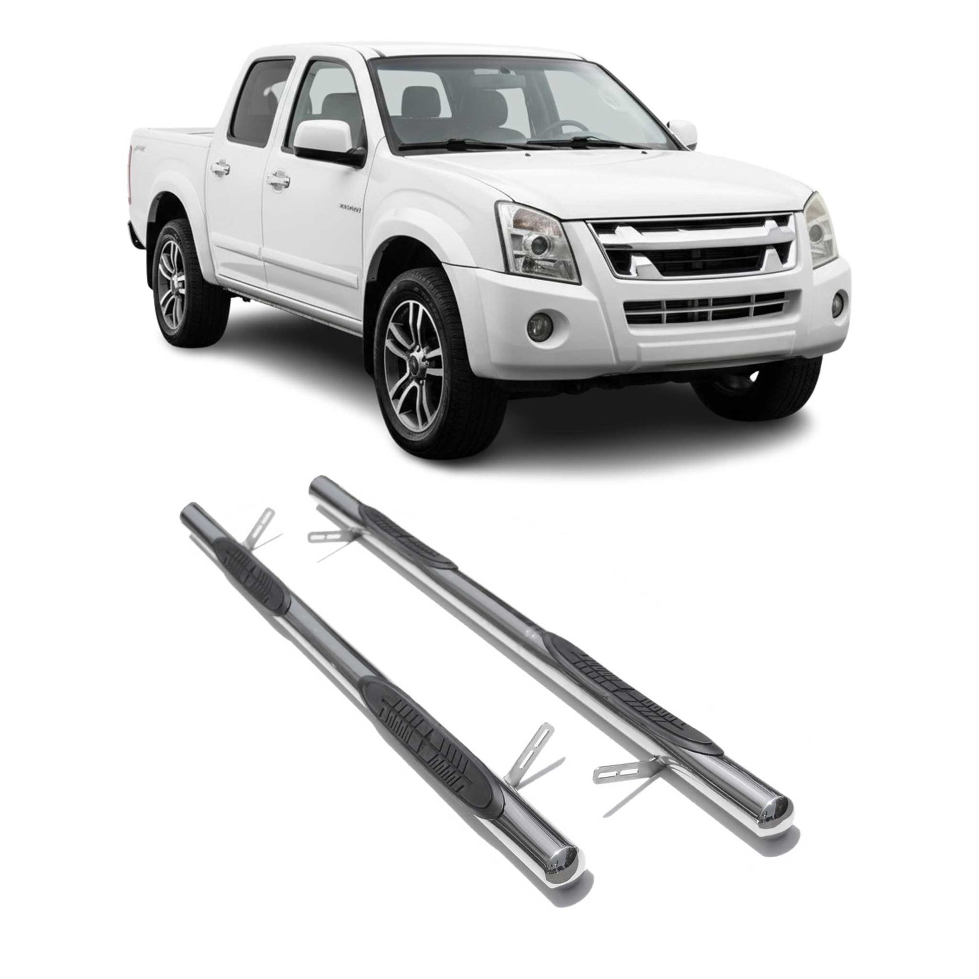 StahlTrittbretter Schwellerrohre für Isuzu D-Max DoubleCab 2007-2012 StahlSilber