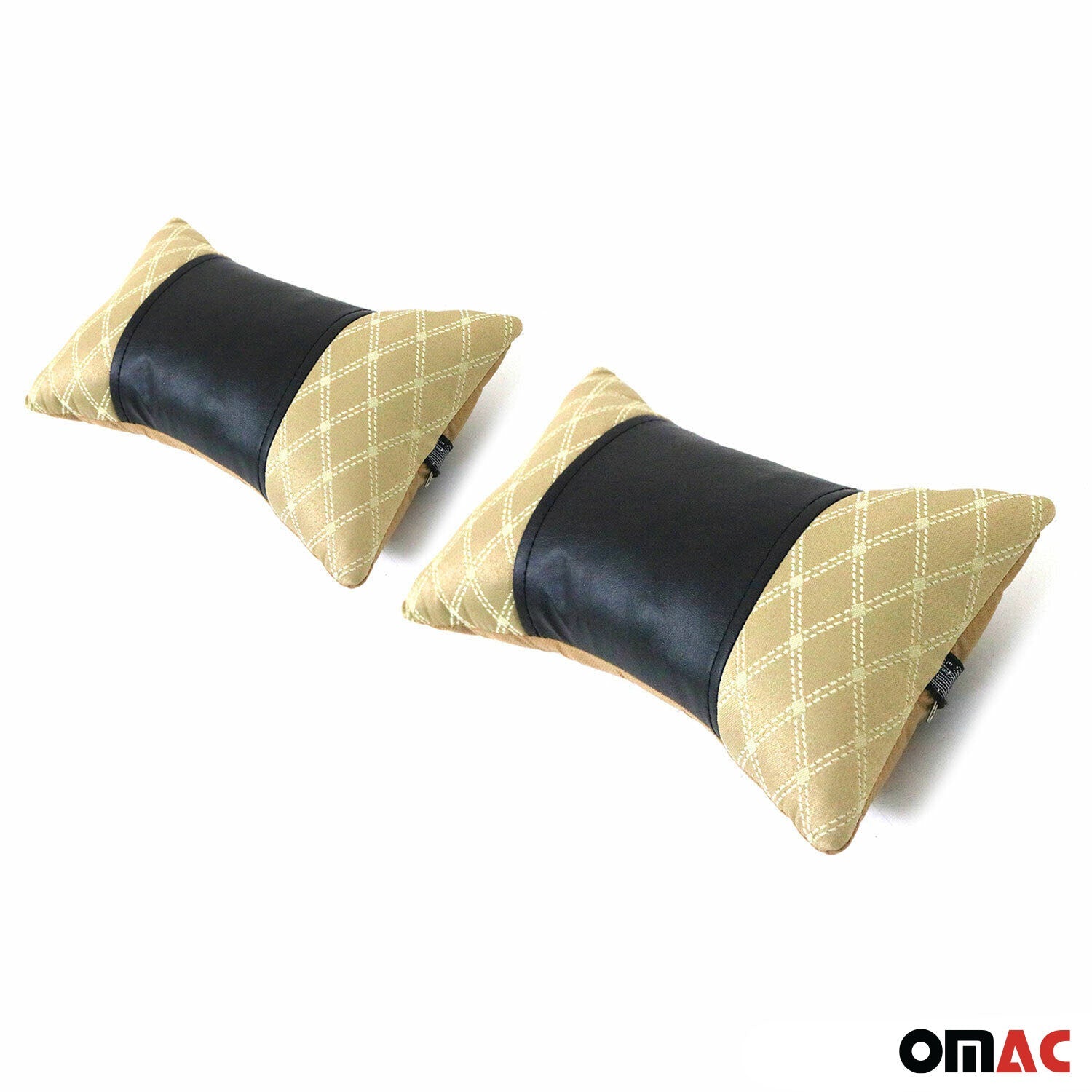 2 sztuki Poduszka na zagłówek samochodowy, poduszka na szyję, skóra beżowa, 8x30 cm
