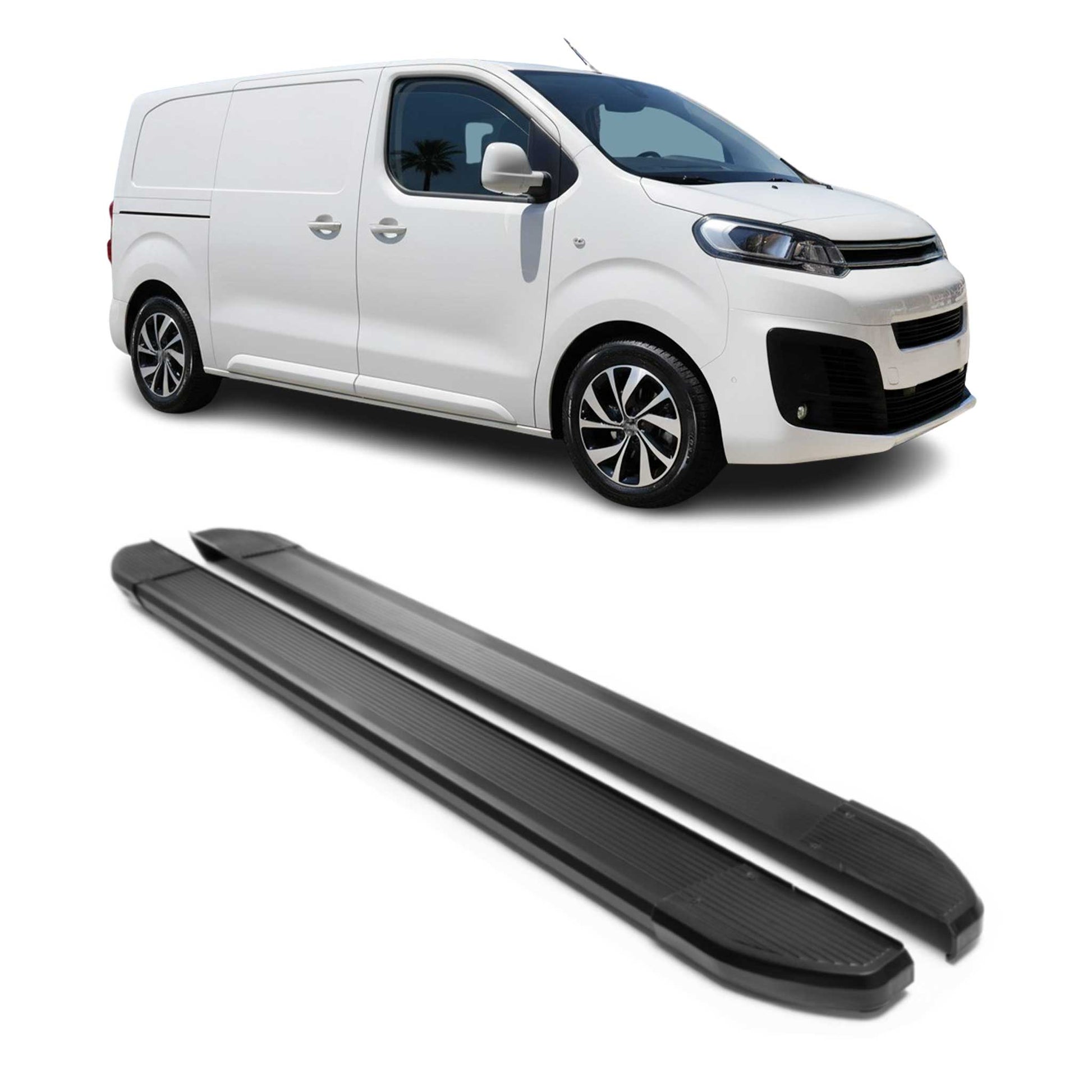 Aluminiowe stopnie boczne/podnóżki do Citroena Jumpy 2017-2025, czarne, L1, krótki rozstaw osi.