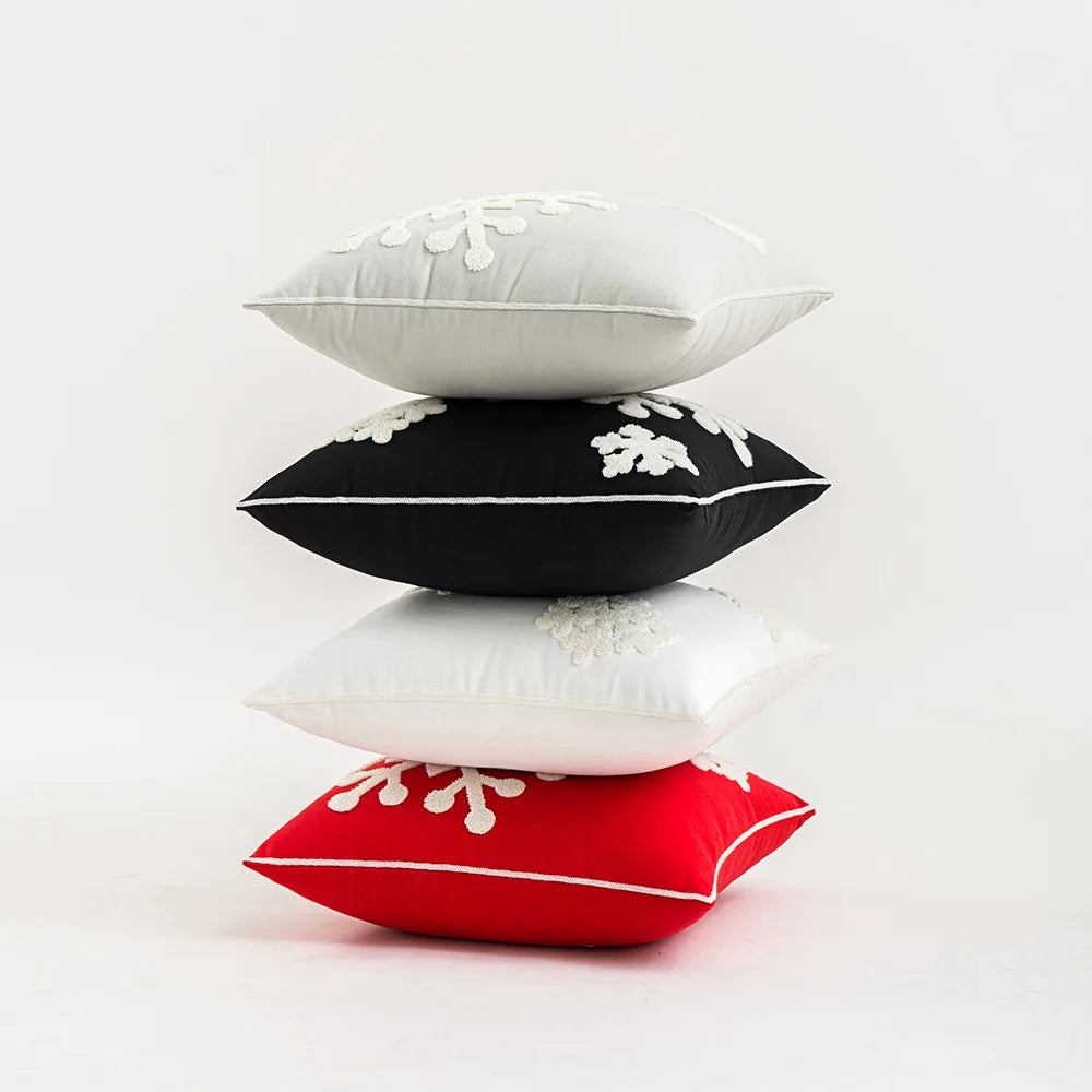 Christmas Style Big Snowflake Throw Pillow Case 45x45cm Canves Wool Embroidery Cushion Cover For Noel Party Home Decoration