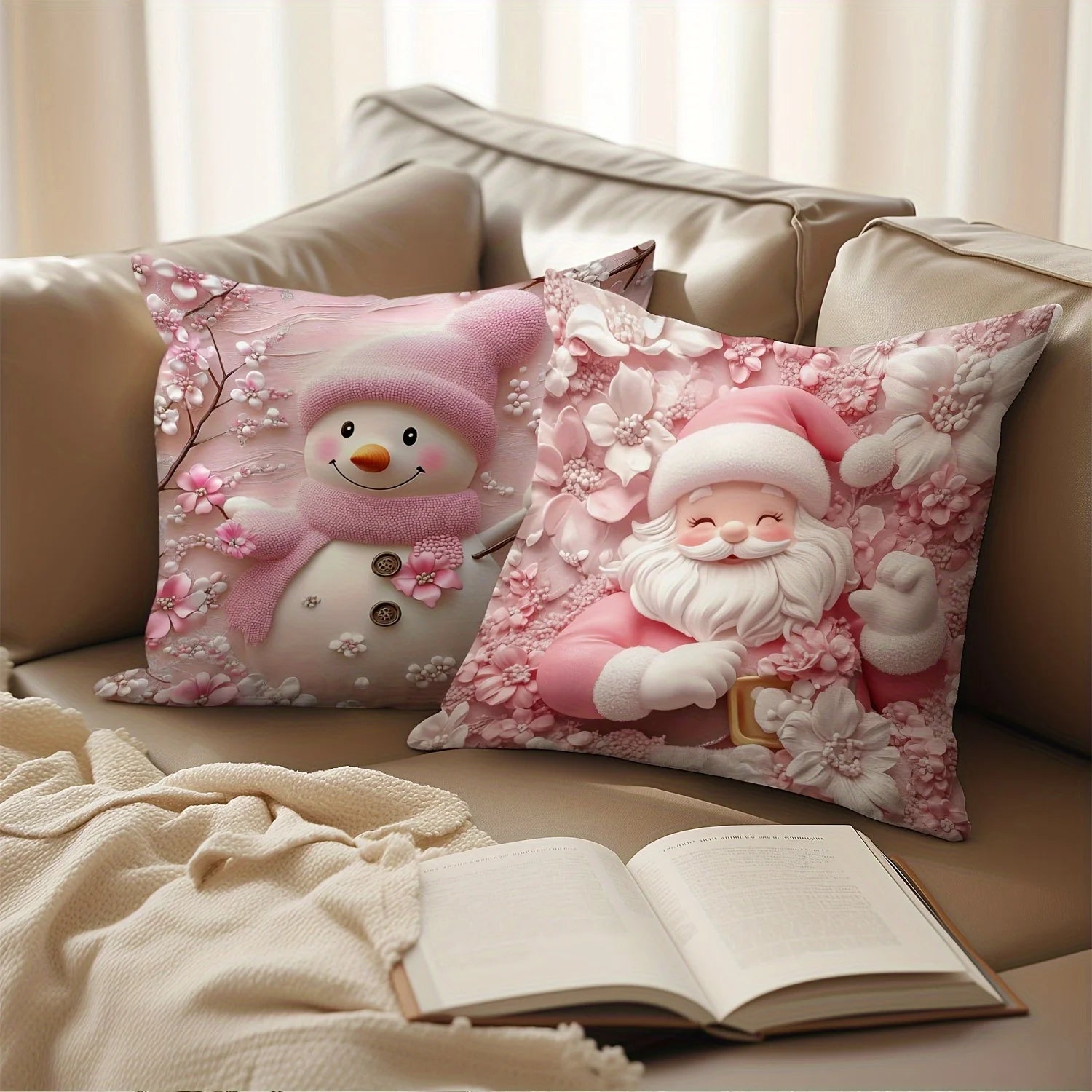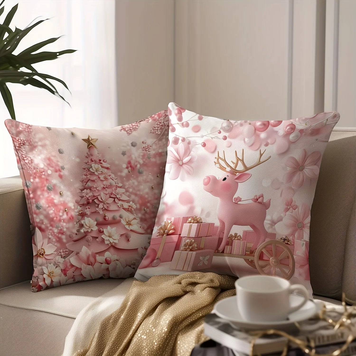 Machine Washable Christmas Pillow Covers with Zippers - Modern Style Decorative Pillowcases (18 Inches)