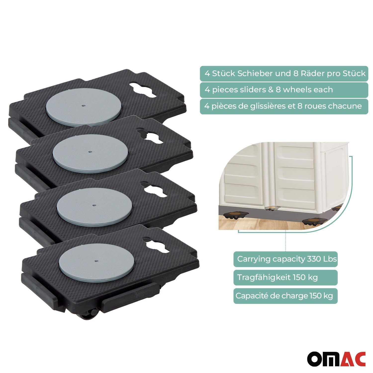 Wózek do transportu mebli 150 kg, wózek meblowy, podwozie transportowe, podnóżek, zestaw 4 szt.