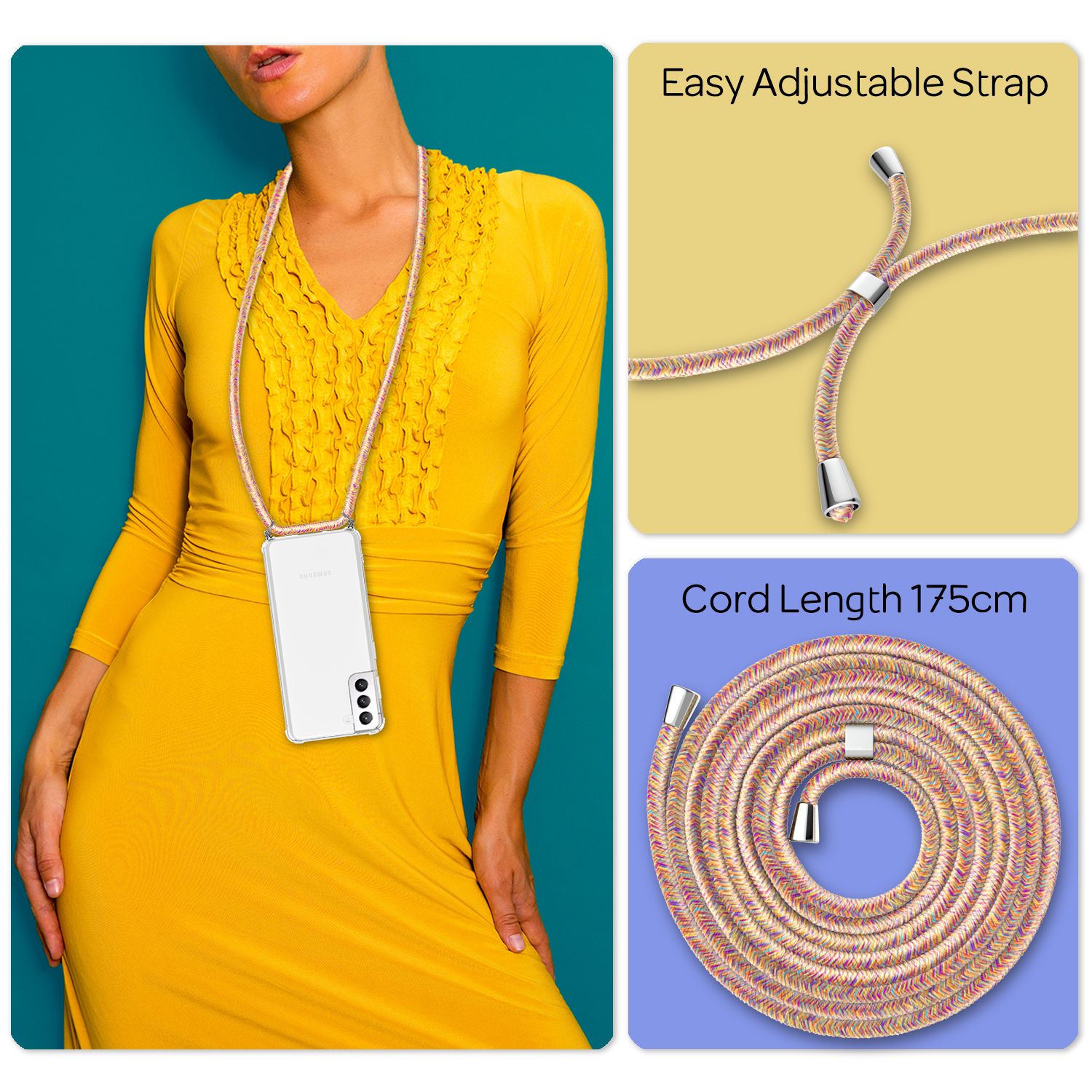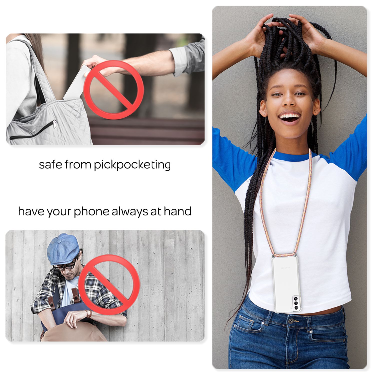 Etui na telefon NALIA Berlin Clear z łańcuszkiem – kompatybilne z Galaxy S21, długość przewodu 60 cm, waga 25 g