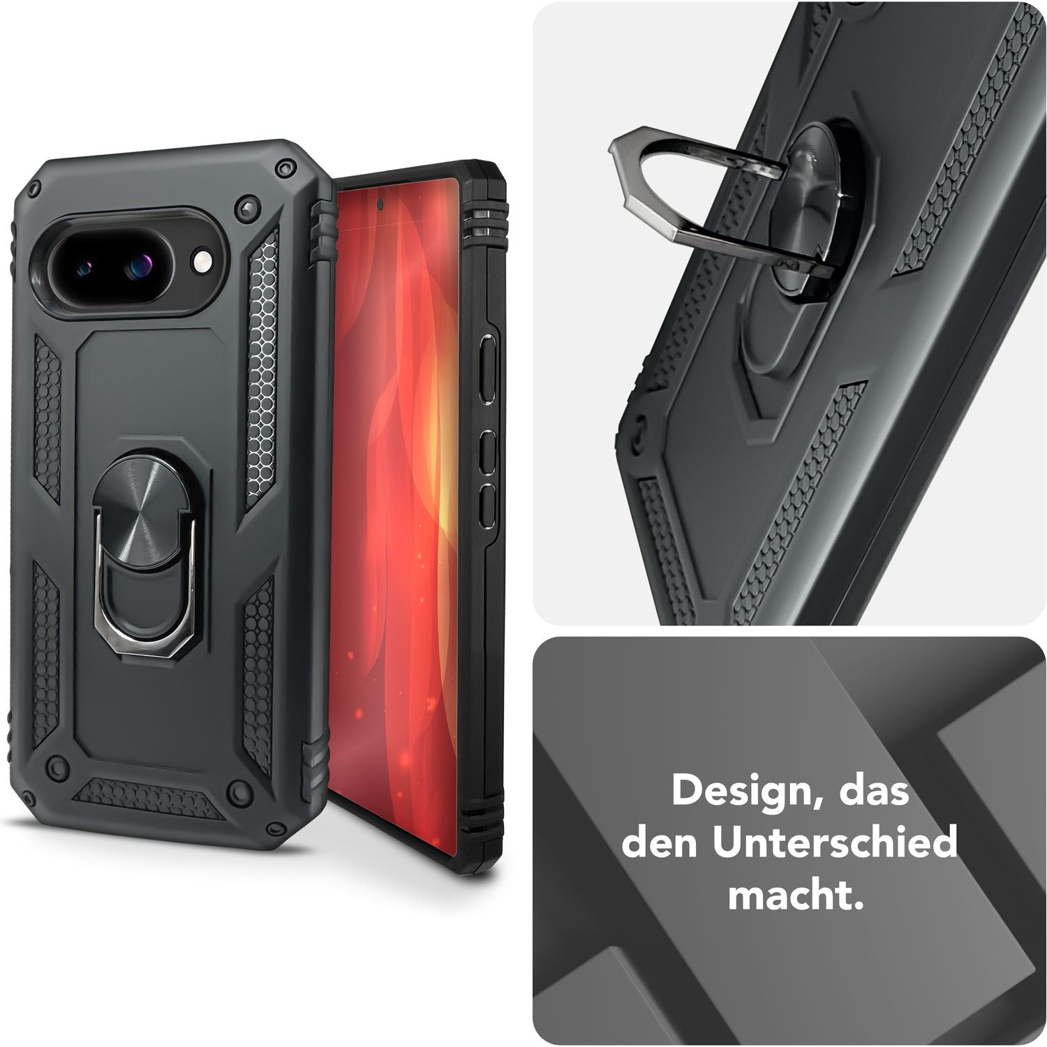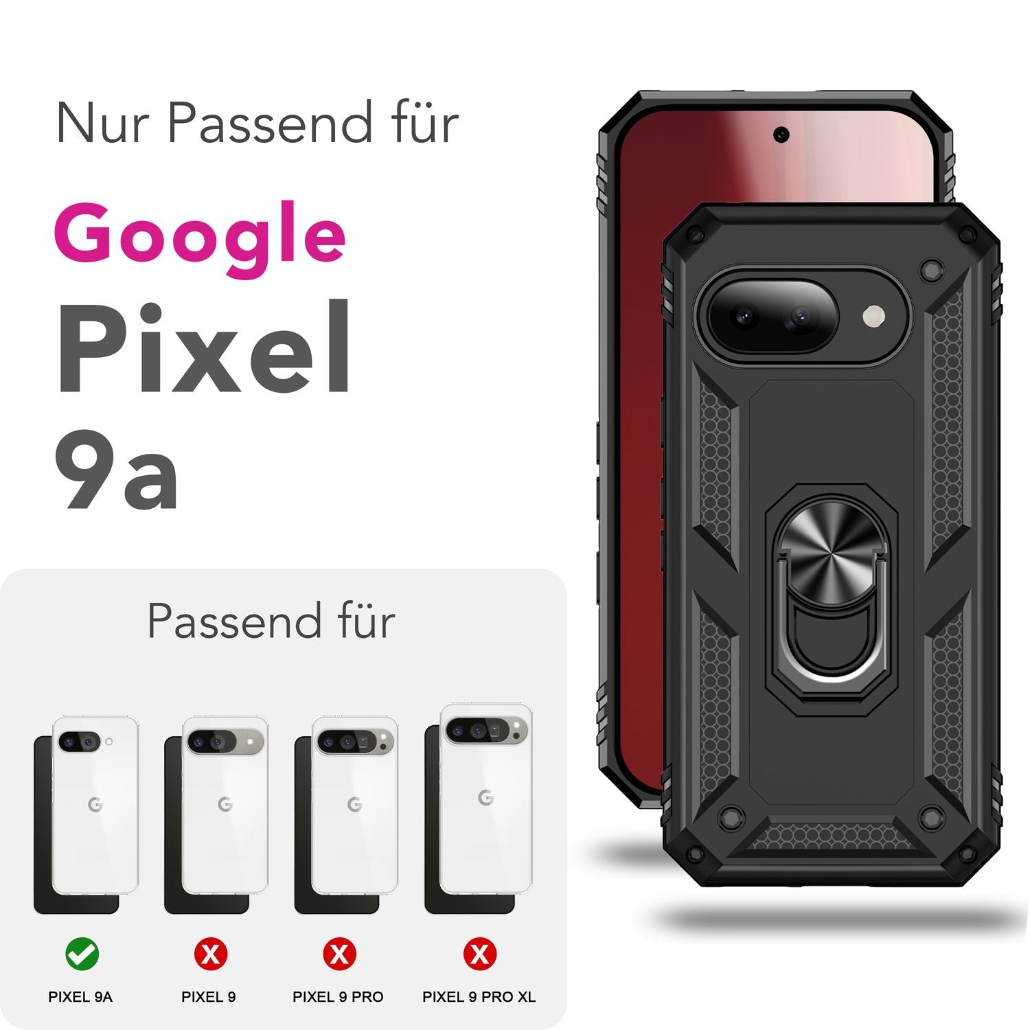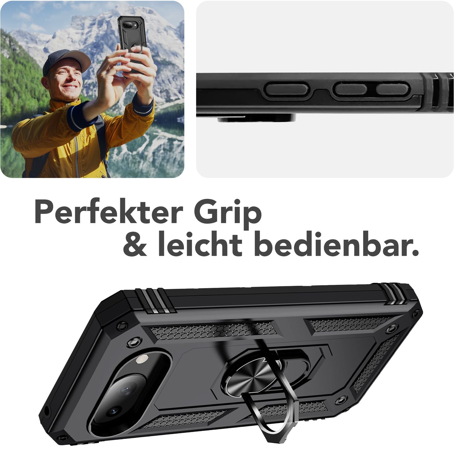 Etui NALIA RingDefend do Google Pixel 9a – wojskowe etui zewnętrzne z uchwytem pierścieniowym 360° i podstawką, antypoślizgowa osłona, wstrząsoodporna obudowa telefonu, wytrzymała obudowa – czarne