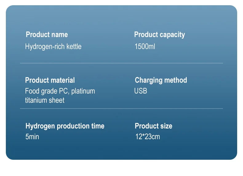 1.5L Hydrogen Rich Portable Sports Water Bottle Rich Molecular Hydrogen Water kettle Hydrogen-Rich Electric Stirring Water Pot
