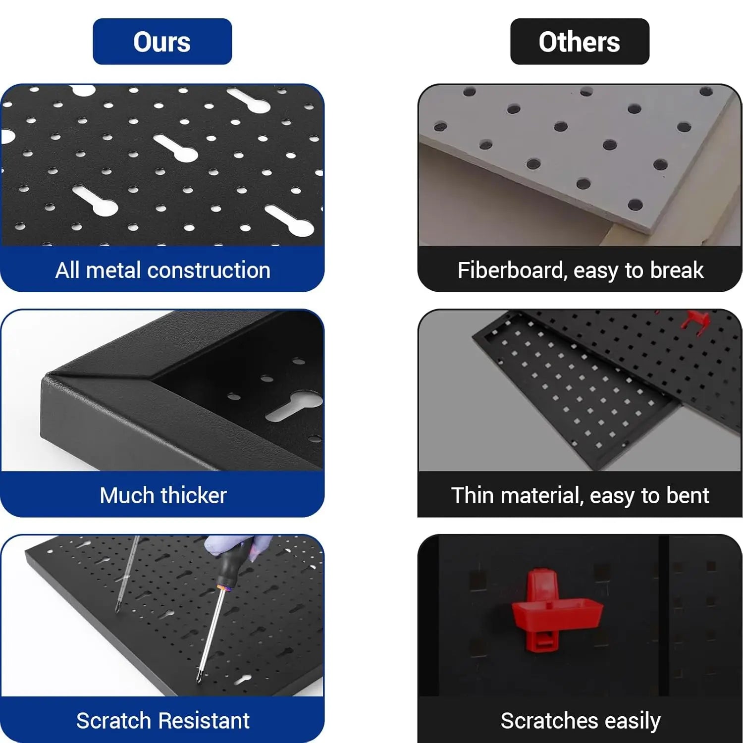 - Sichere Befestigung: Stabil montiertes Pegboard verhindert Herunterfallen von Gegenständen und sorgt für zuverlässig geordnete Lagerung.