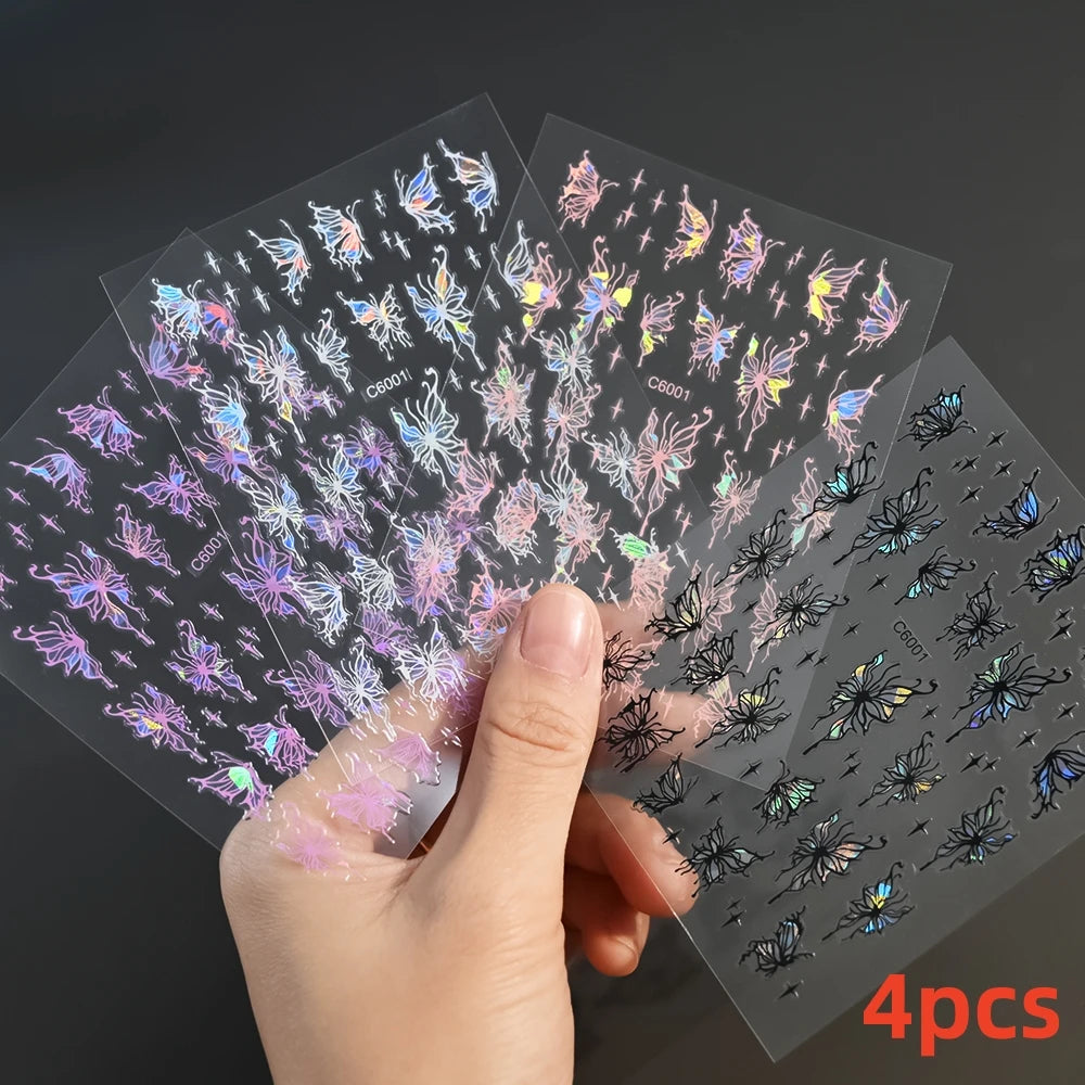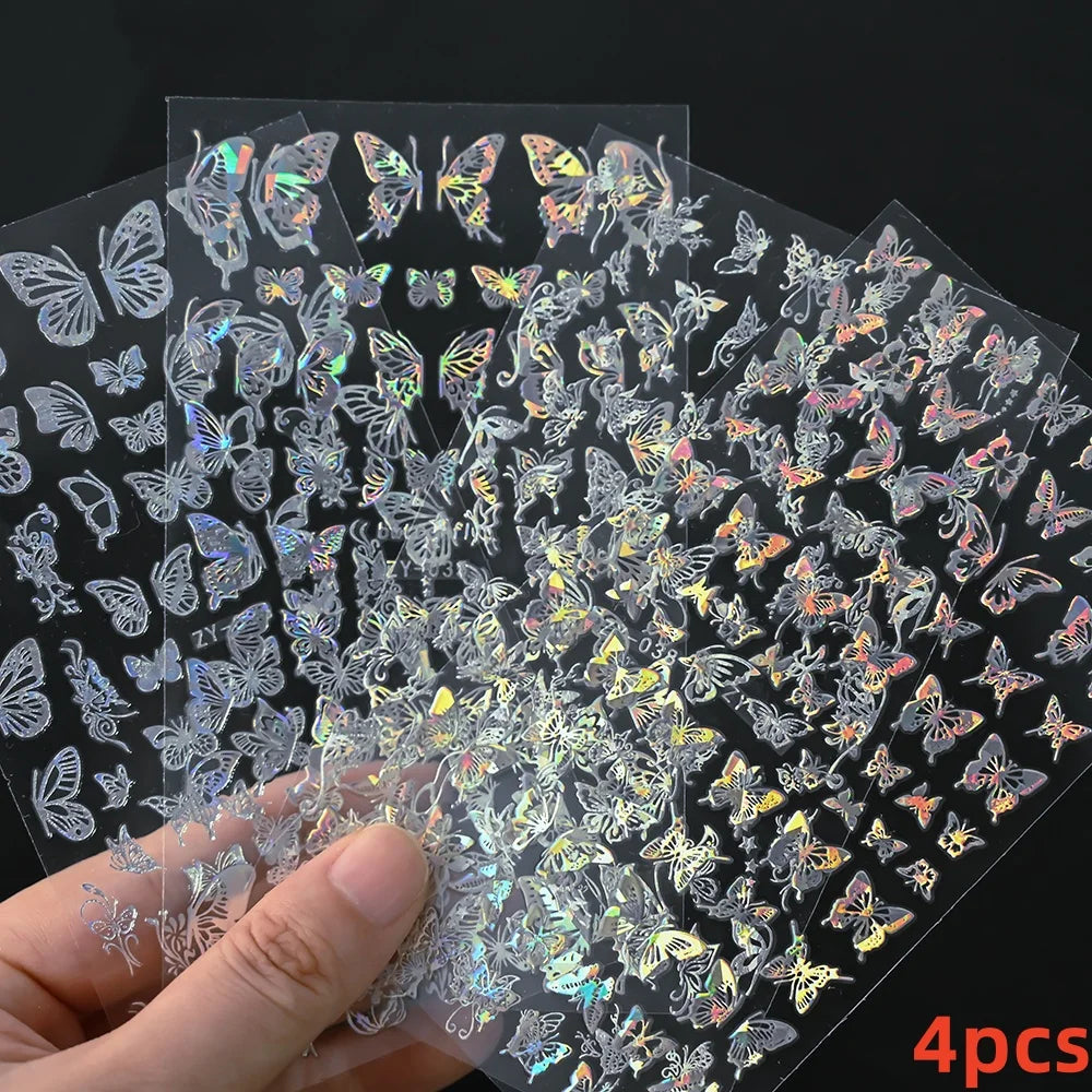 Verwandeln Sie Ihre Nägel im Handumdrehen in glänzende, holografische Kunstwerke mit selbstklebenden 3D-Schmetterlingsstickern – einfach, schnell und langanhaltend.