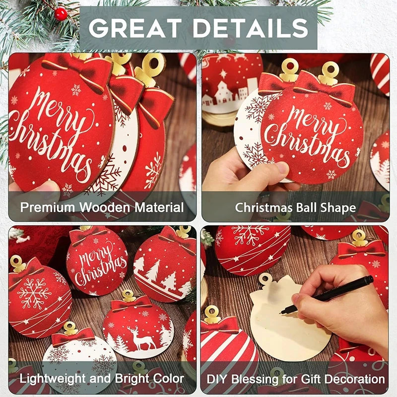 • 12 Stück Holz-Weihnachtskugeln