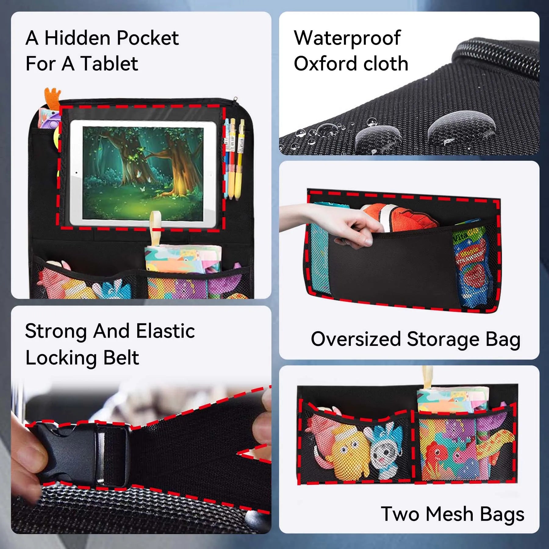 - Schafft zusätzlichen Stauraum ohne feste Installation: Die faltbare Konstruktion passt an fast jede Rückseite eines Sitzes und nutzt sonst ungenutzten Platz optimal.