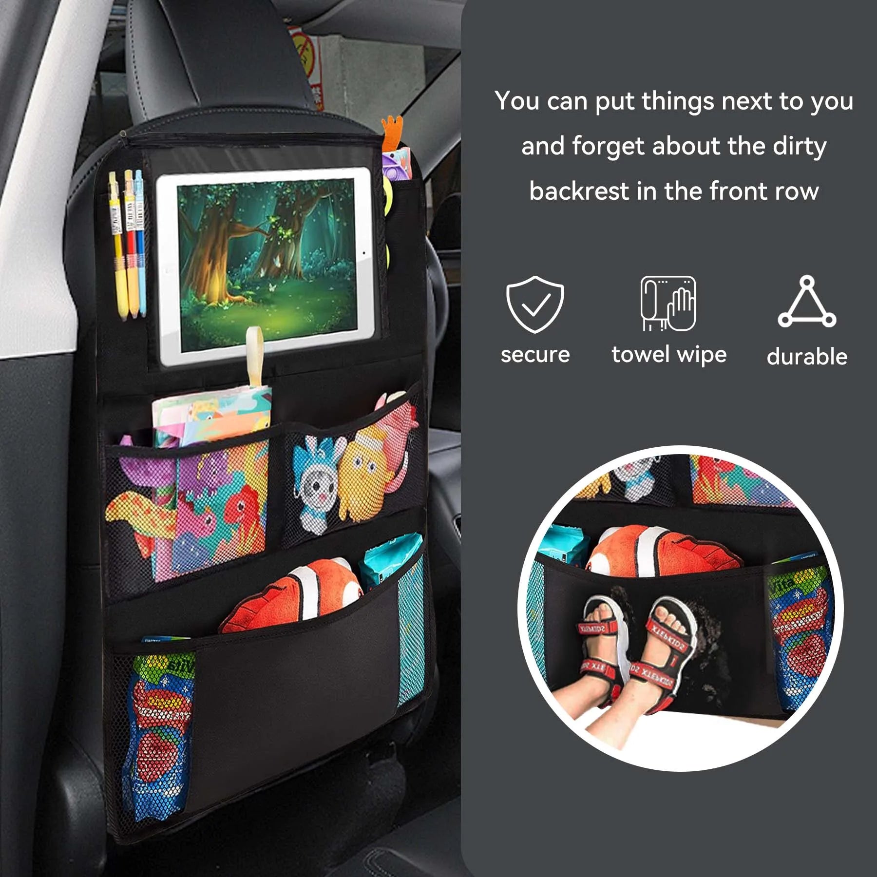 - Einfacher Zugriff für Mitreisende: Die aufgeräumte Rückseite sorgt dafür, dass Kinder und Mitfahrer ihre Sachen selbst erreichen können, ohne den Fahrer abzulenken.