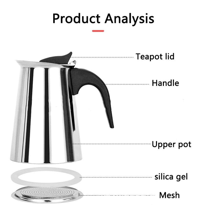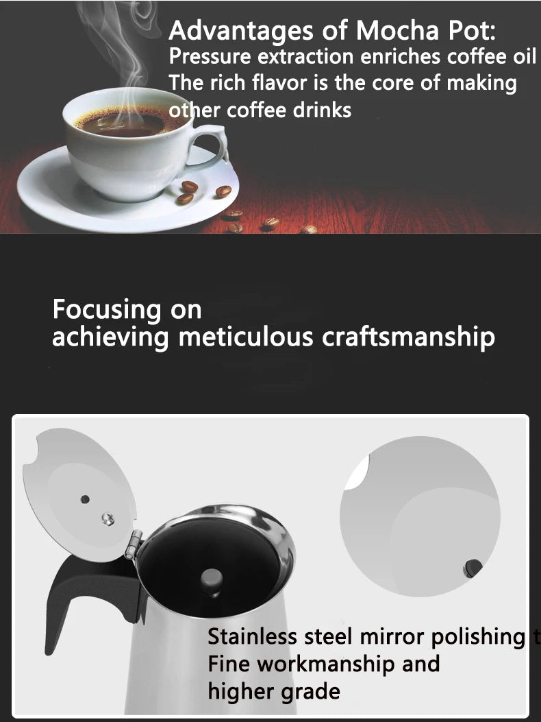 Erleben Sie intensiven Mokka- und Espresso-Geschmack jederzeit: leistungsstarke elektrische Mokka-Kanne aus Edelstahl für 2/4/6/9 Tassen, ideal für Küche und Haushalt.
