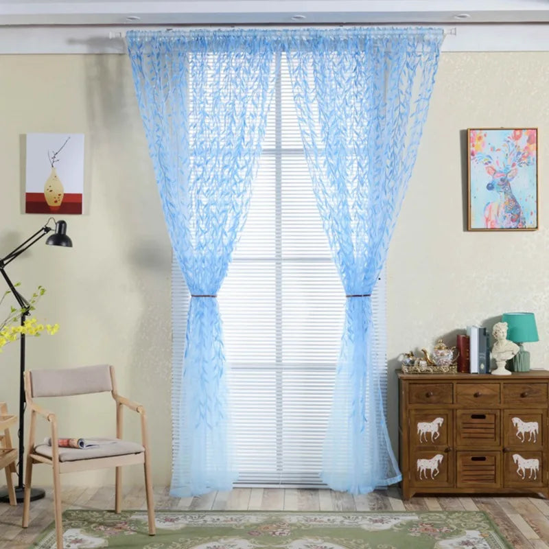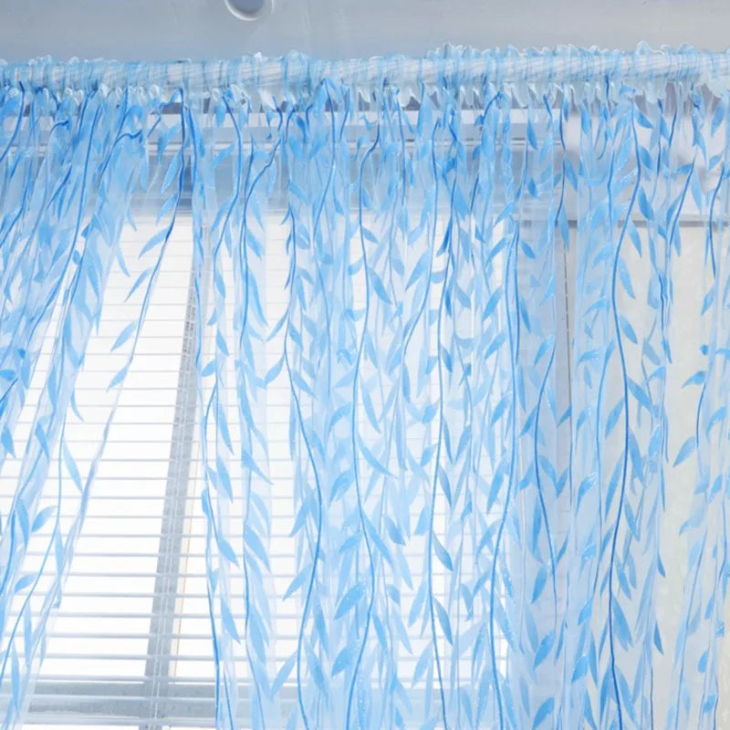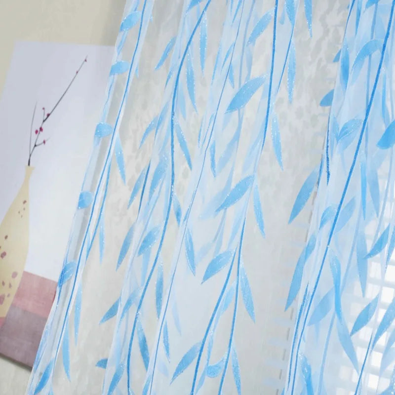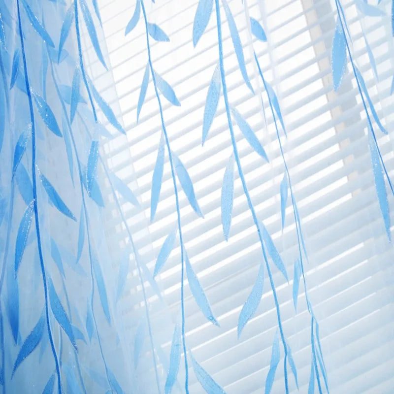 Diese eleganten, transparenten Vorhang-Paneele mit grünem Weidenblatt-Motiv vereinen zarten Lichtdurchlass mit moderner Raumgestaltung und schaffen sofort eine freundliche, gepflegte Atmosphäre in Wohnräumen.