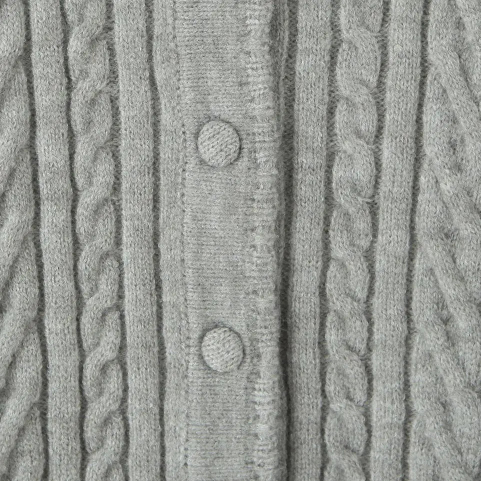 ZJOAN SHOWCN O-Neck Cardigan Set - Knopfverschluss Kurzrock Elastischer Bund Grau Khaki Größe Regular Extra-Heavy