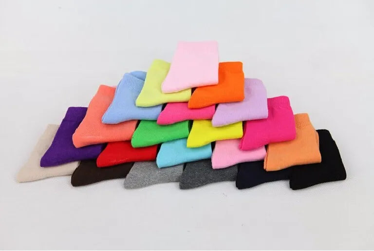 Hochwertige Baumwollsocken in 20 fröhlichen Farben, die Komfort, Atmungsaktivität und langlebige Qualität für Kinder von 1 bis 9 Jahren vereinen.