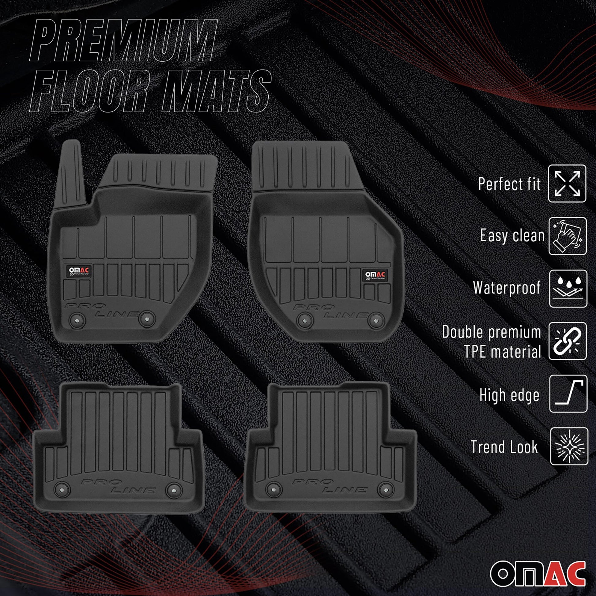 Unsere Premium-TPE-Fußmatten bieten einen Allwetterschutz und sind somit für jede Jahreszeit und jedes Klima geeignet. Ob im heißen Sommer oder im schneereichen Winter, diese Matten halten den Anforderungen stand und schützen Ihren Innenraum vor witterungsbedingten Schäden. Genießen Sie Luxus mit ihrem raffinierten Aussehen, das den Innenraum Ihres Fahrzeugs in neue Höhen der Raffinesse hebt. Diese leicht zu reinigenden und zu pflegenden Fußmatten sind eine praktische und stilvolle Ergänzung für jedes Fahrzeug.
