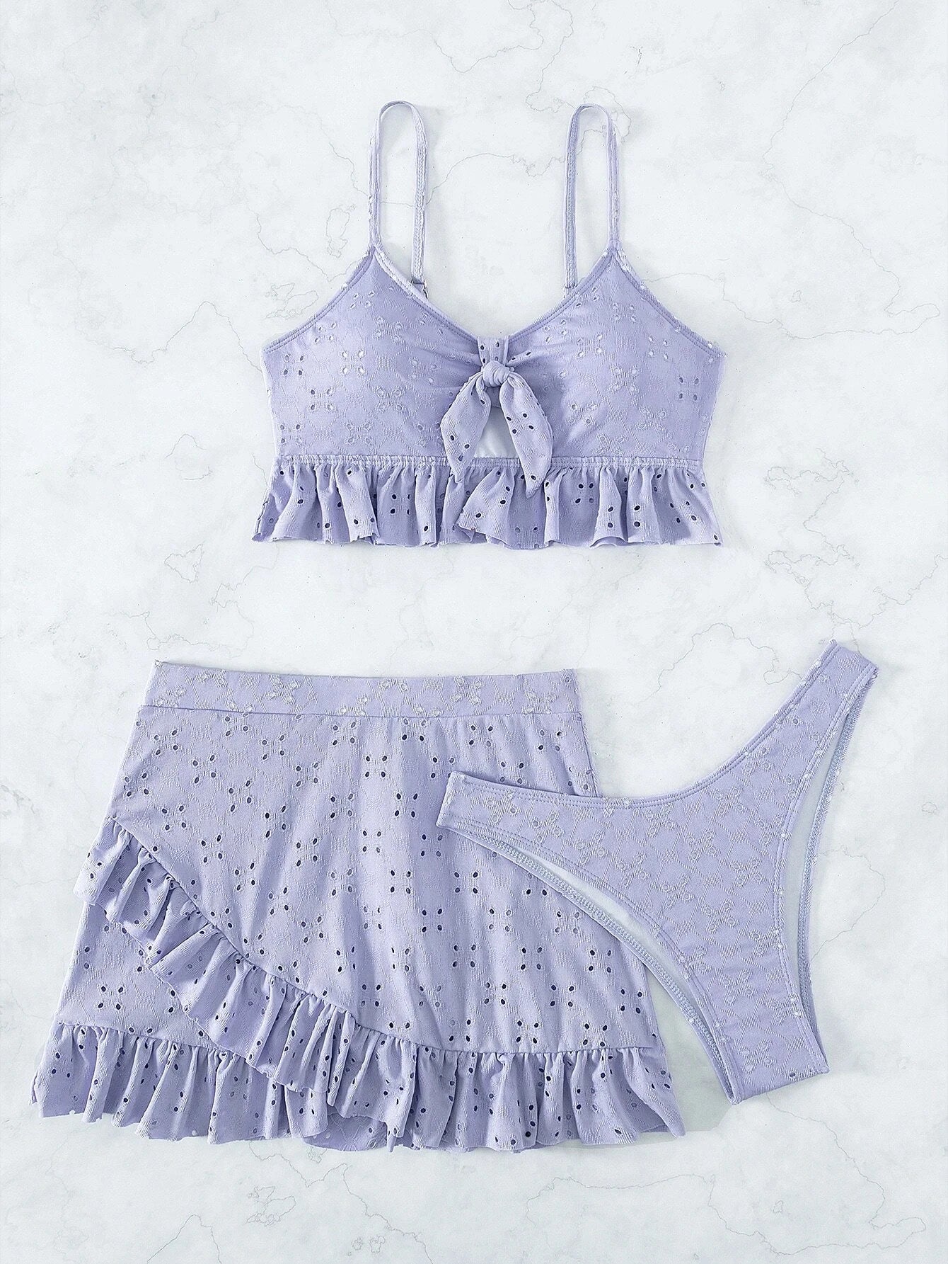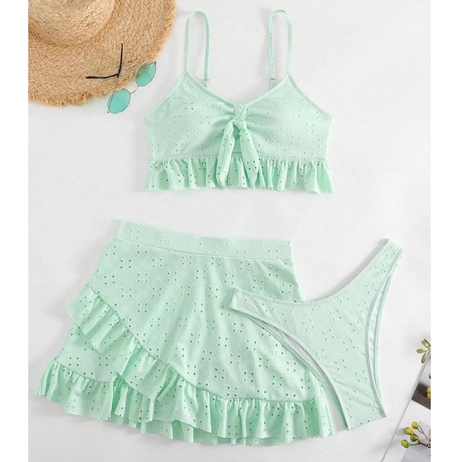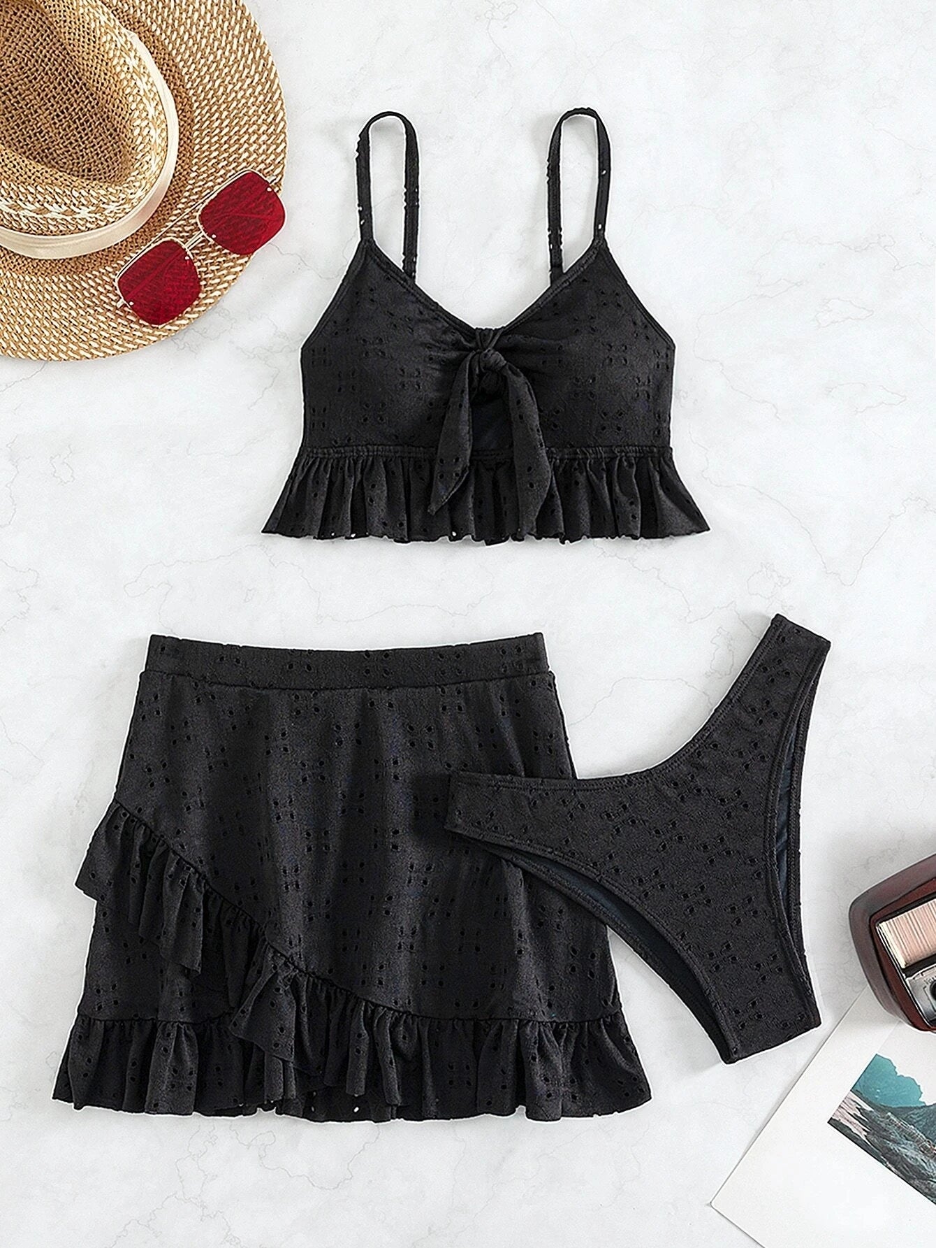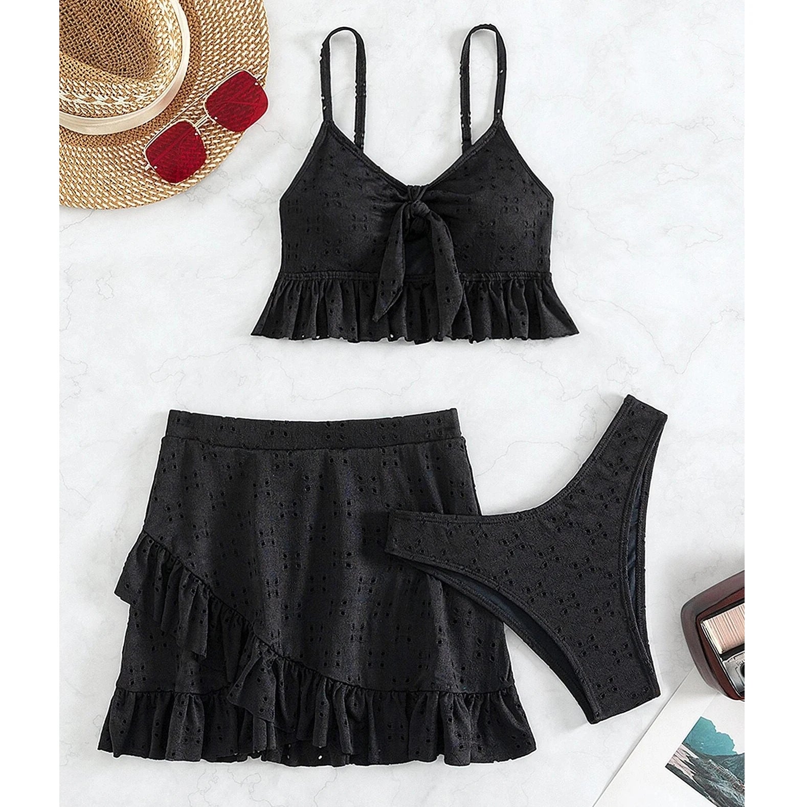 2025 3pack Schwimmbekleidung Frauen: Bikini Schwimmanzug Strand Rock - Knoten Badeanzug Strandmode Rüschen Zweiteilig Bikini Set Biquini Vielseitigkeit