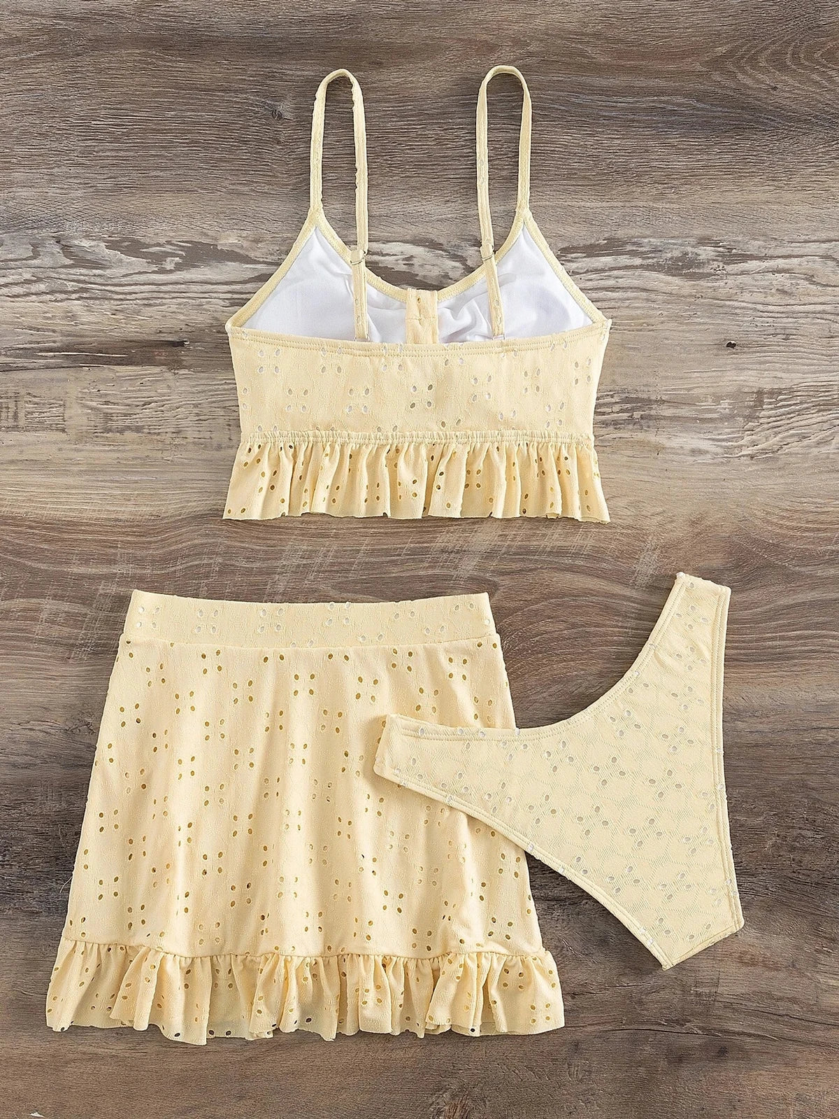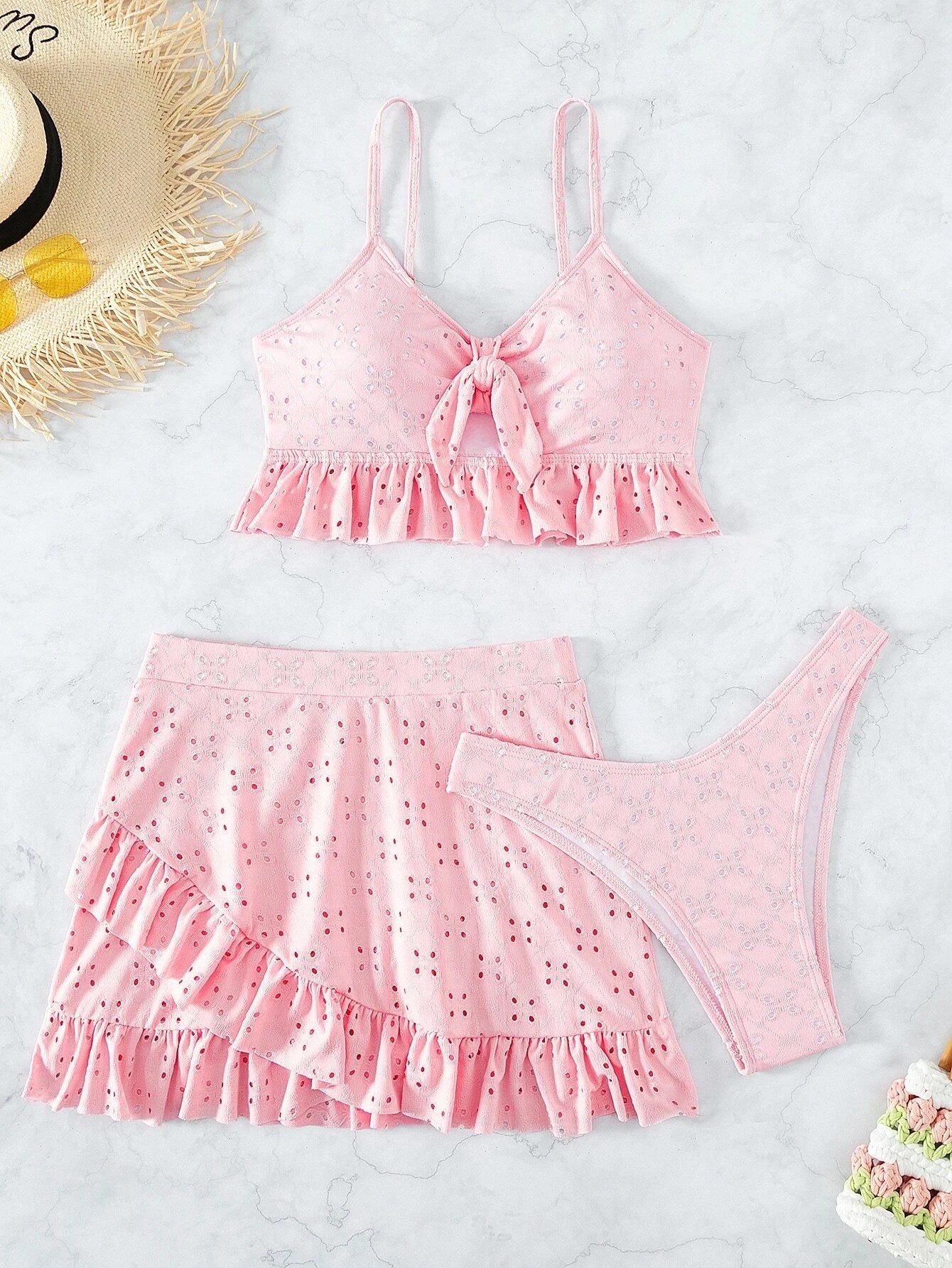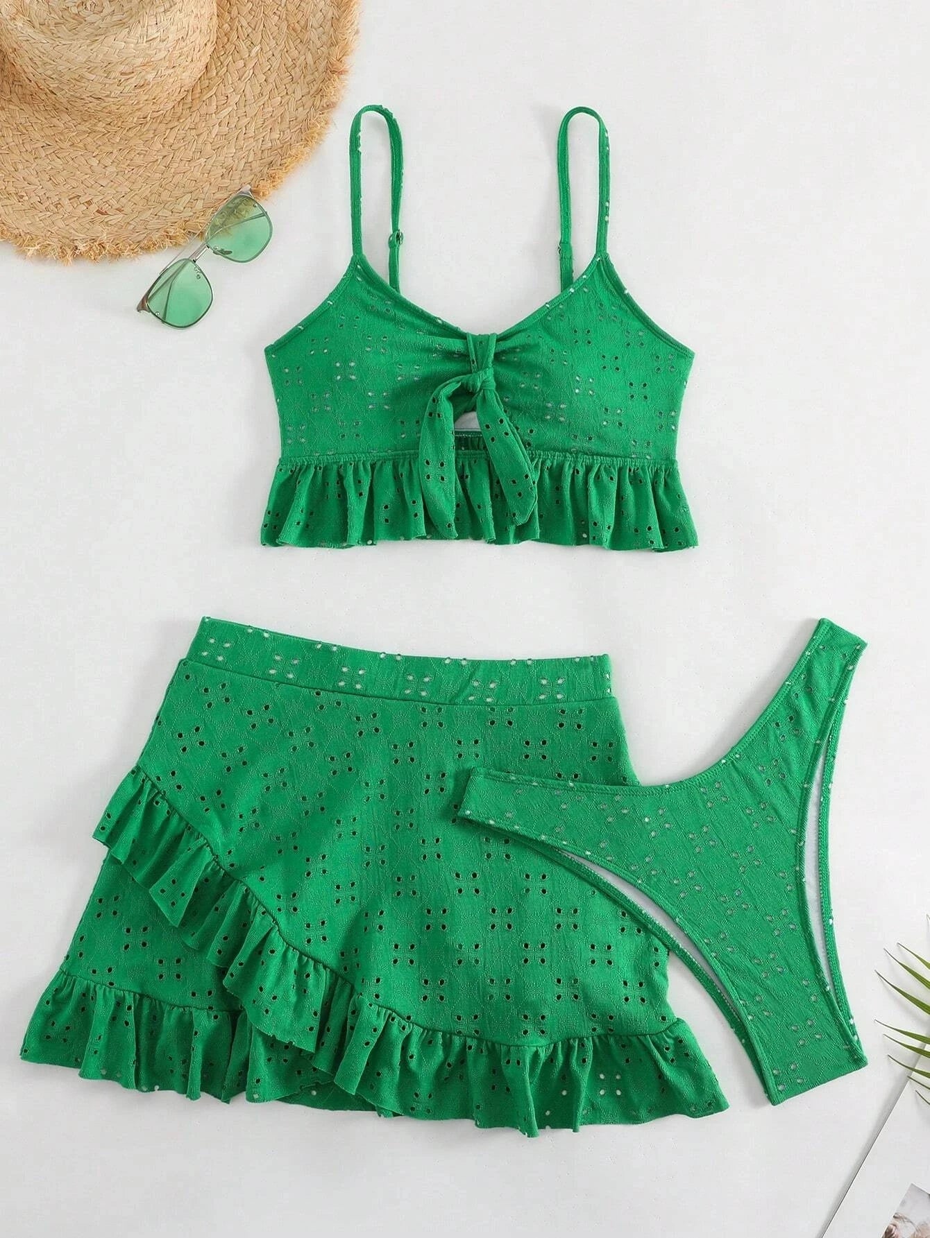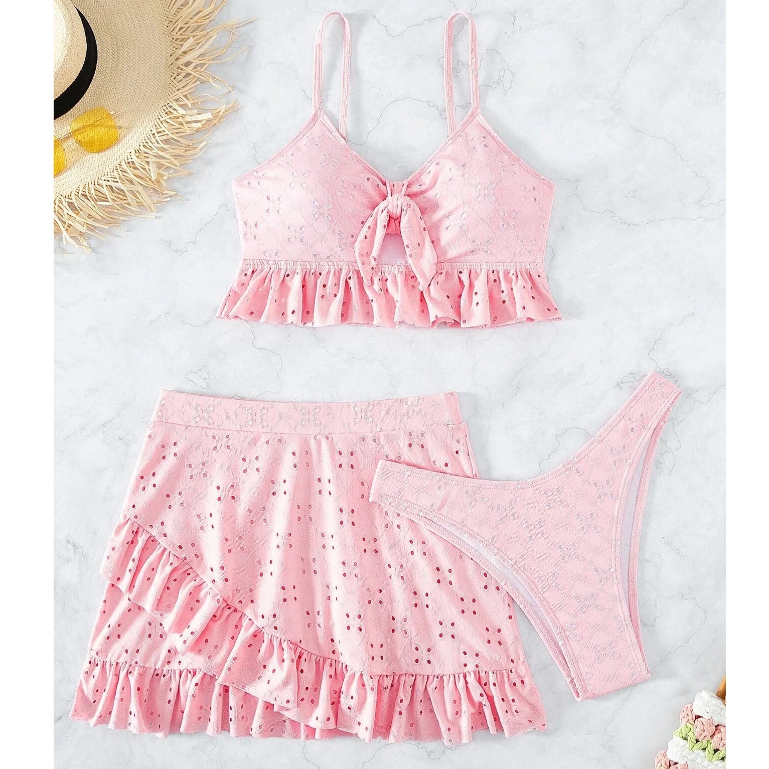 2025 3pack Schwimmbekleidung Frauen: Bikini Schwimmanzug Strand Rock - Knoten Badeanzug Strandmode Rüschen Zweiteilig Bikini Set Biquini Vielseitigkeit