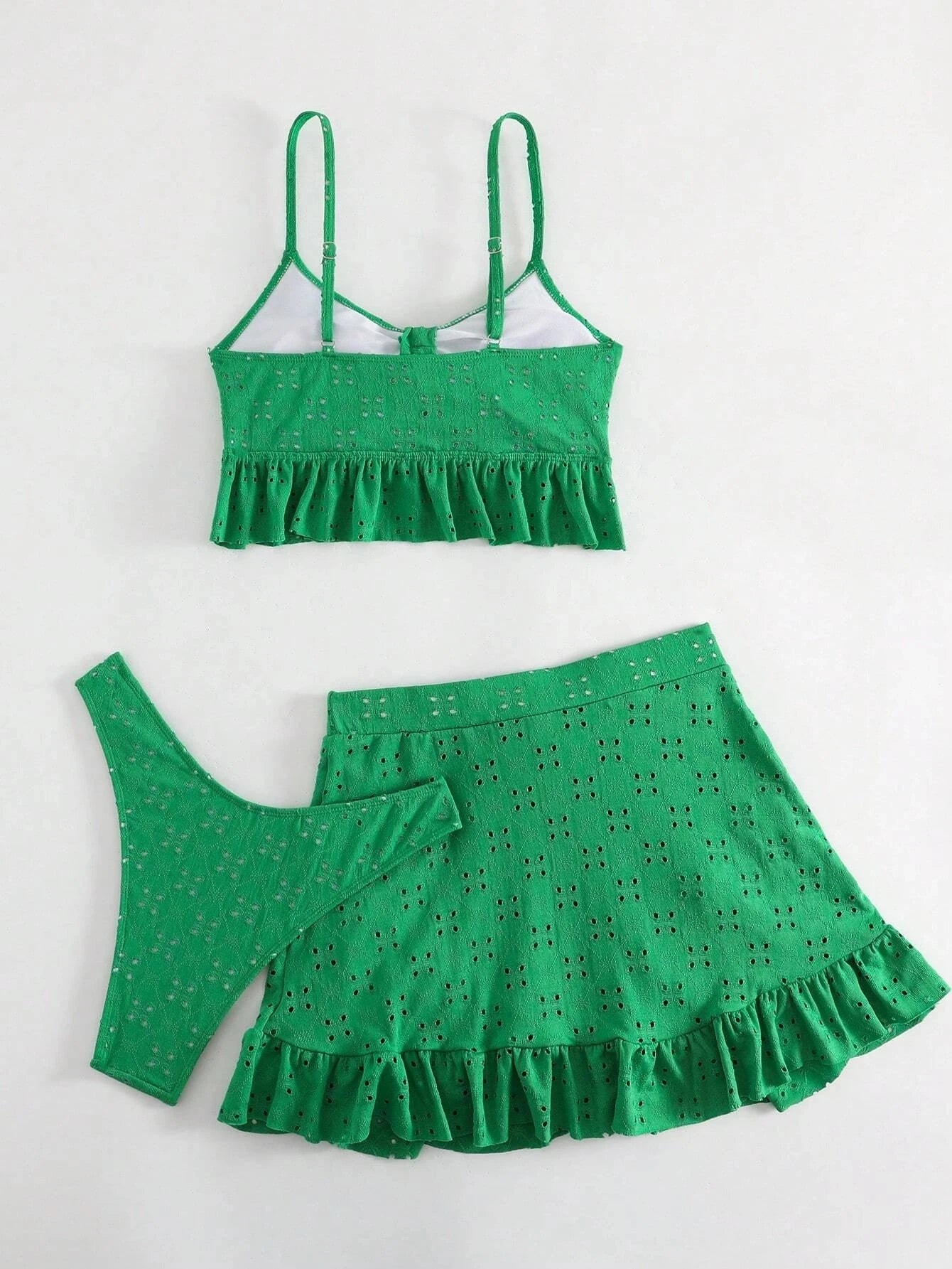 - Praktisches zweiteiliges Bikini-Set kombiniert Oberteil, Unterteil und Strandrock für flexible Looks.