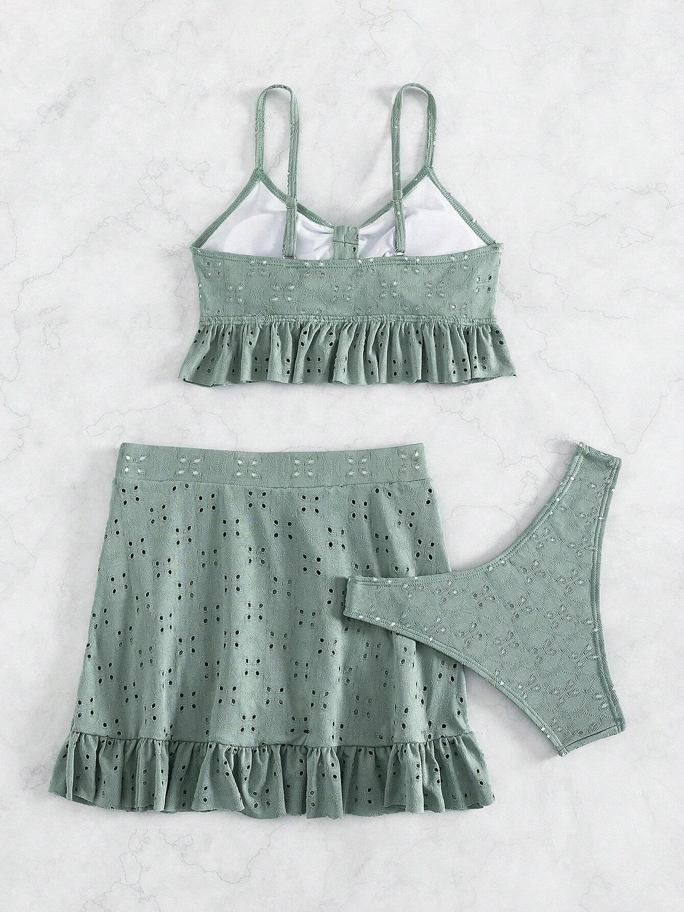 - Schnitt: Zweiteiliges Bikini-Set mit separatem Strandrock