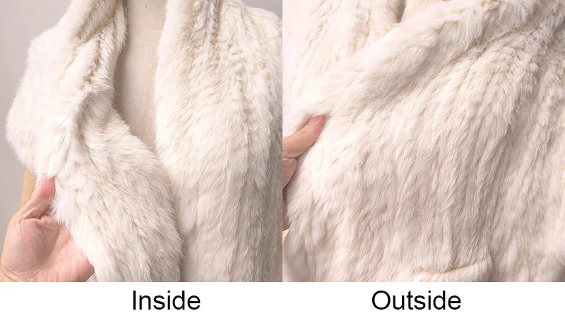 - Materialbasis: Feine Strickware kombiniert mit hochwertiger Kaninchenpelz-Optik für weiche Haptik.