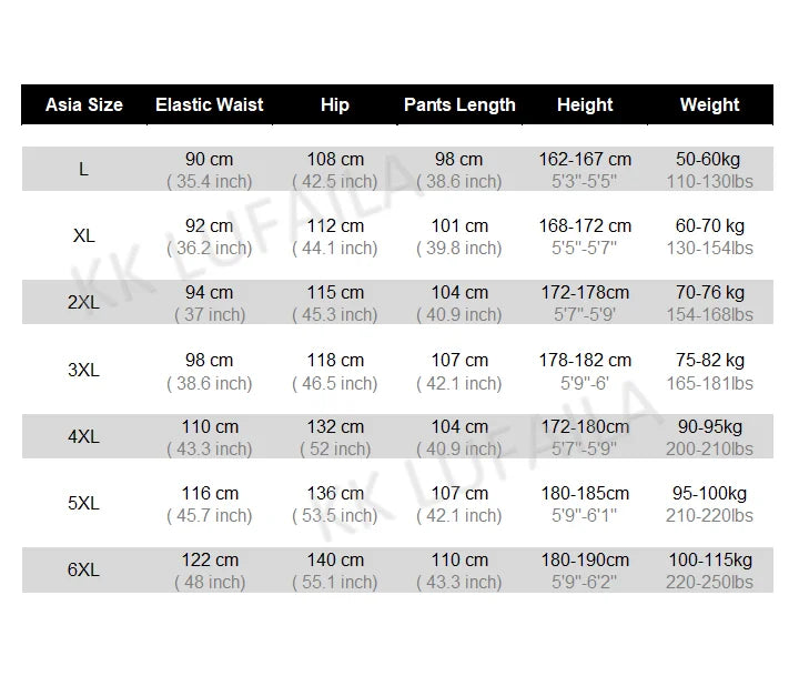 KK LUFAINACN Jogginghose Schnelltrocknend - 6XL Elastik