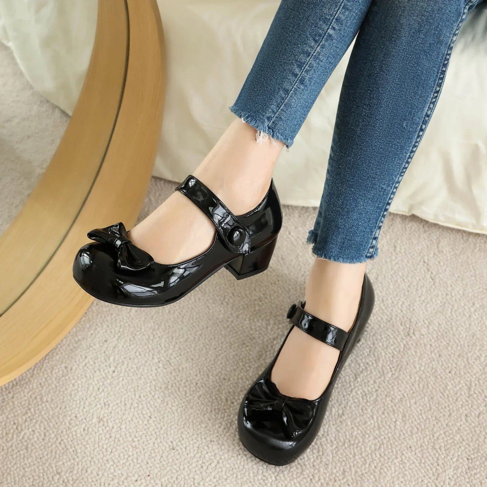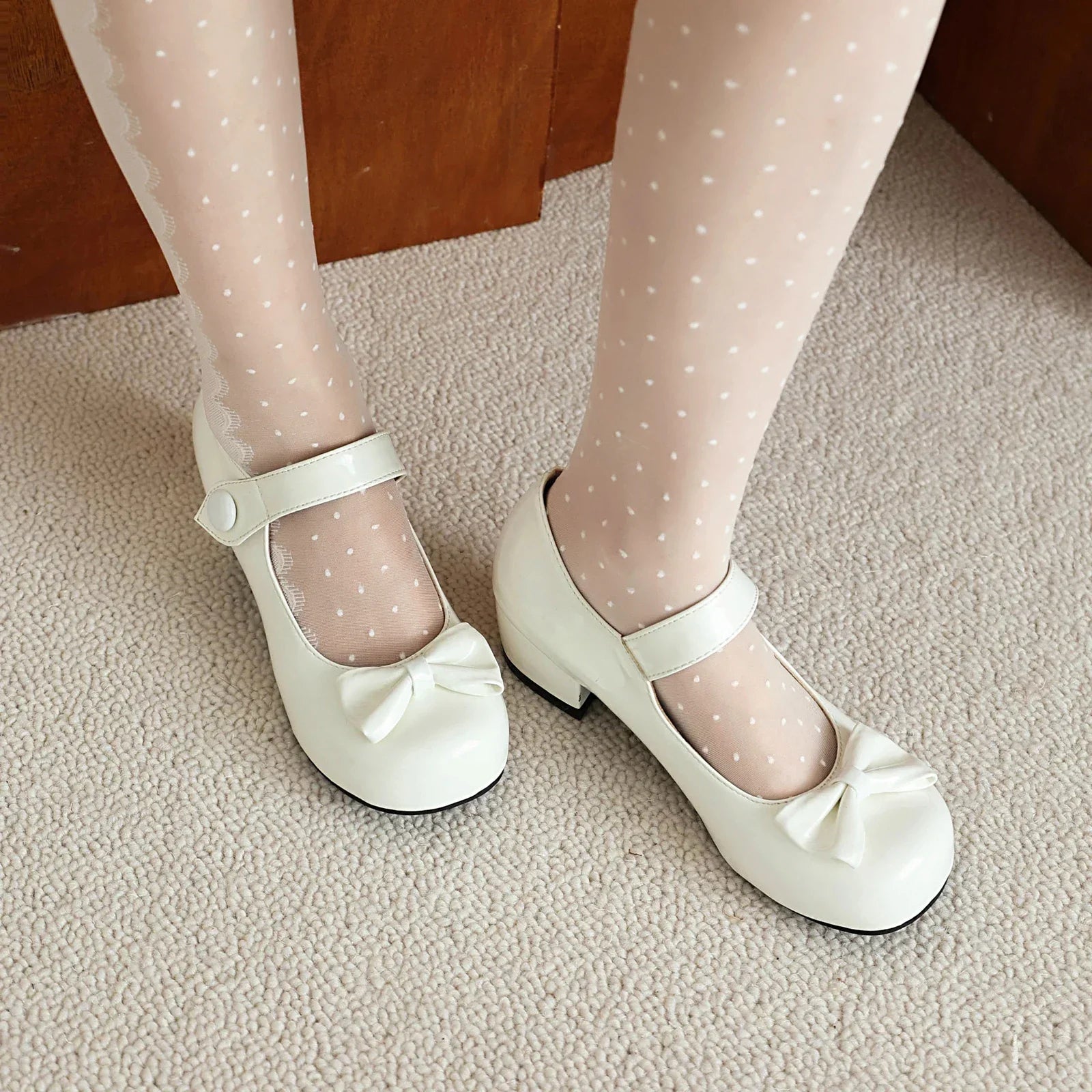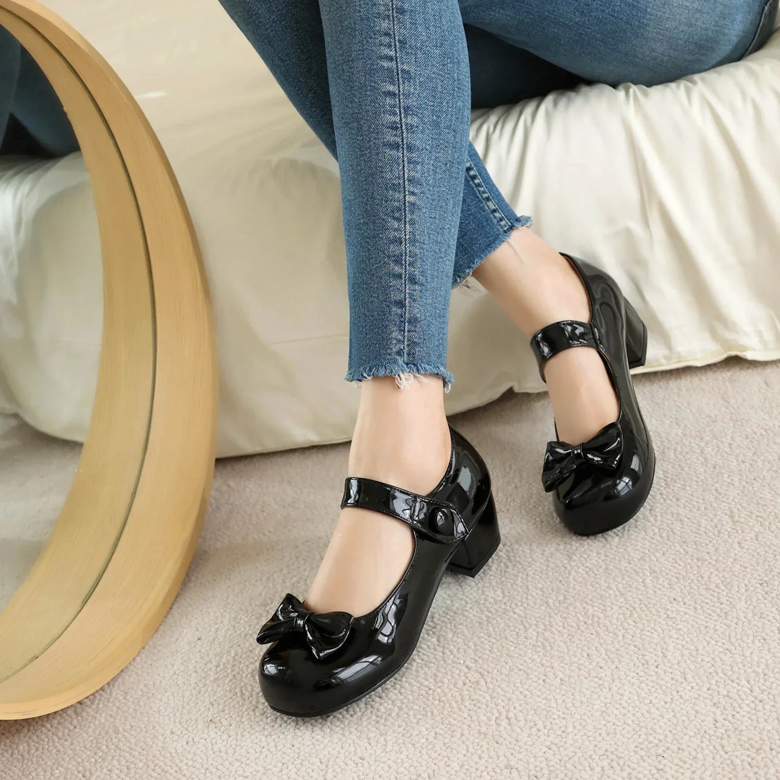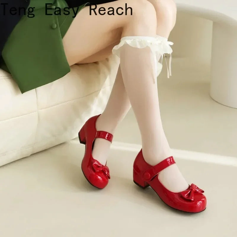 Frühling Mädchen Mary Jane Niedrige Absätze – Elegante Mary Jane Schuhe mit dekorativer Schleife für besondere Anlässe
