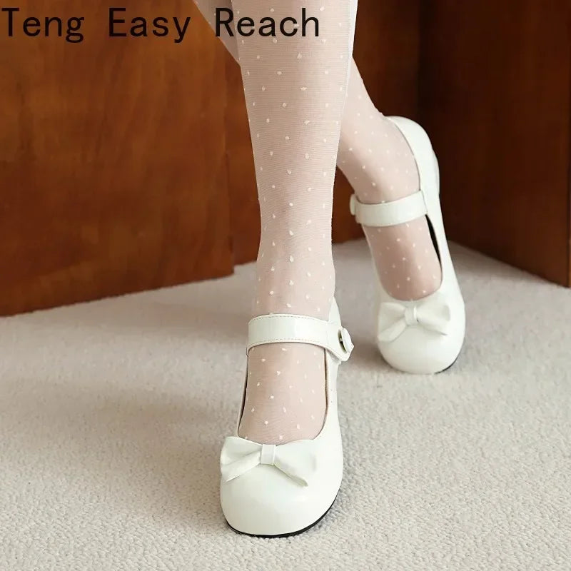 Handgefertigte Mary Jane Schuhe mit dezenter Plateausohle und zierlicher Schleife – perfekt für Cosplay, Lolita-Mode und stilvolle Auftritte.