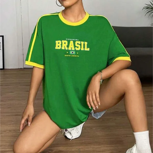 - Klares Letter-Print-Design mit Brasil-Motiv, das visuelle Aufmerksamkeit erzeugt und deinem Outfit sofort Persönlichkeit verleiht.