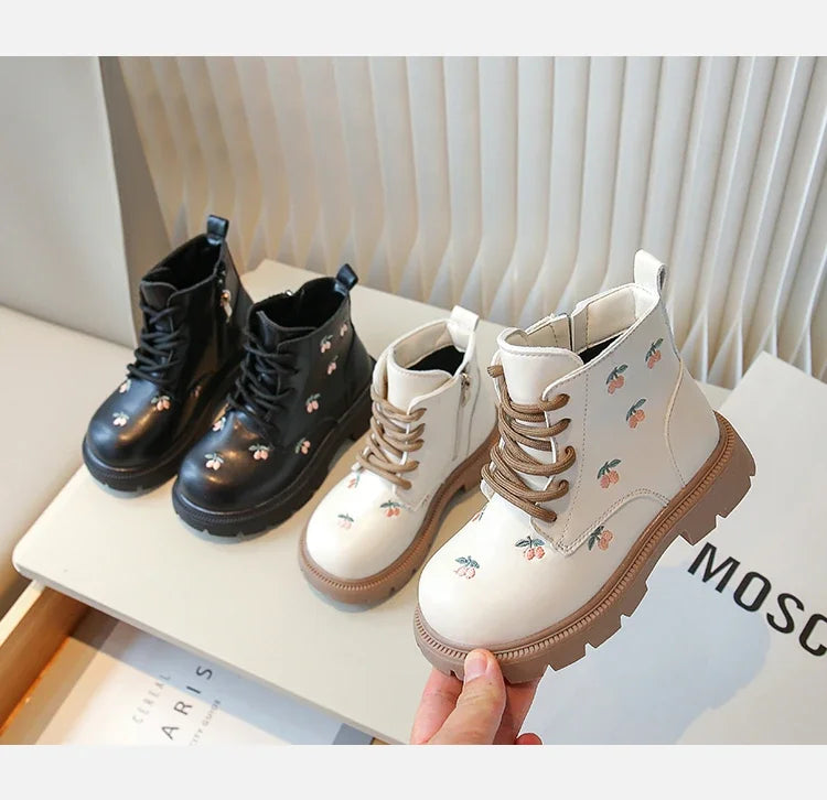 Luna Cherry Kurzstiefel Stickerei - Komfortable Koreanische Kurzstiefel für Mädchen